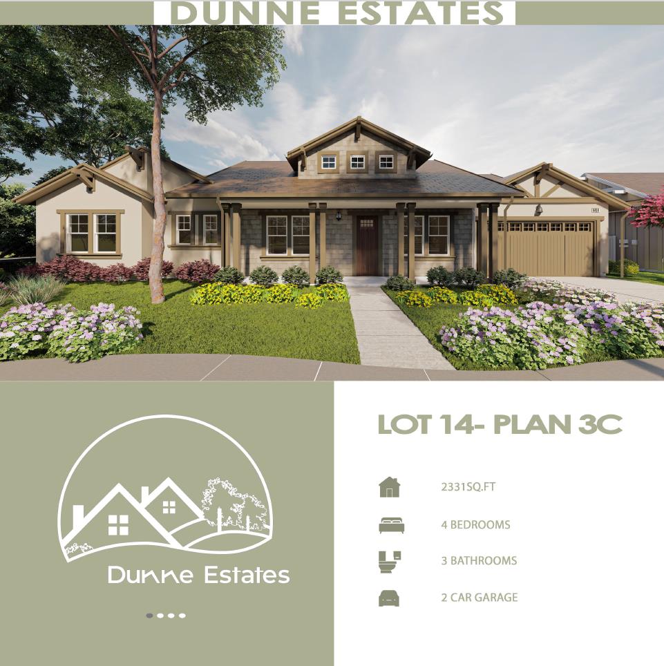 Dunne Estates proudly presents this stunning, highly sought-after single-story energy and cost-efficient new construction home. This residence boasts a distinctive and tailored floor plan, accentuated by soaring ceilings and an abundance of natural light, complemented by premium finishes. The gourmet kitchens feature exquisite quartz countertops, a generously-sized island, striking Shaker-style cabinetry. Encompassing 2,331 square feet, this home comprises 4 bedrooms, 3 baths and office/formal dining room, centered around a captivating great-room concept with a fireplace. Additionally, this newly constructed home offers both electric and natural gas. The inclusion of solar panels and two electric vehicle charger preparations further elevates the allure of this exceptional property. Buyers are eligible to receive up to a $35,000 incentive for the interest rate buydown, potentially reducing the initial interest rate by 2% lower than the market rate. Furthermore, a $31,000 option is included with this remarkable offer.