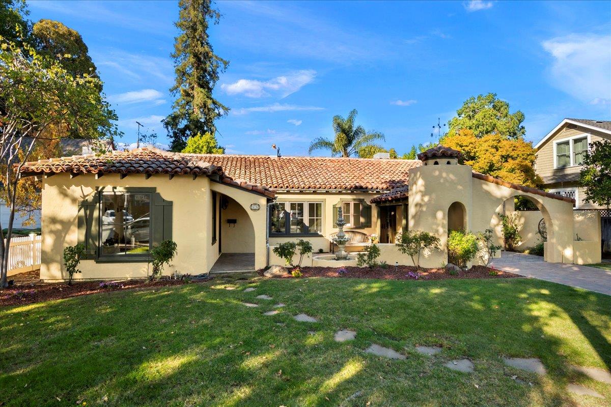 Walk to Downtown Campbell from this gorgeous 3/2.5 Spanish Colonial home! Known as the Margeson-Trowbridge House, this home has 2259 sf of historic charm. There's also a 500 sf detached 1/1 ADU w/ private entrance & patio. Alice Ave Historic District is one of the most desired streets in Campbell. Open floor plan features 2 living areas, incl great room w/ vaulted ceiling & skylight. Remodeled kitchen w/ extra deep granite counter tops, custom knotty alder cabinets, farmhouse sink, SS appliances & pendant lighting over huge island. Inside laundry, A/C, recessed lights & private office. Remodeled baths, incl primary w/ 2 sinks, huge walk-in shower w/ Waterworks tile & heated floors. Historic charm in every room: custom iron work, 1930 fireplace & picture railing, custom door/window trim, unique ceiling craftsmanship & hardwood floors, incl all of the original white oak. Backyard has tons of space to entertain w/ outdoor fireplace, built-in BBQ, granite counters & large grassy area.