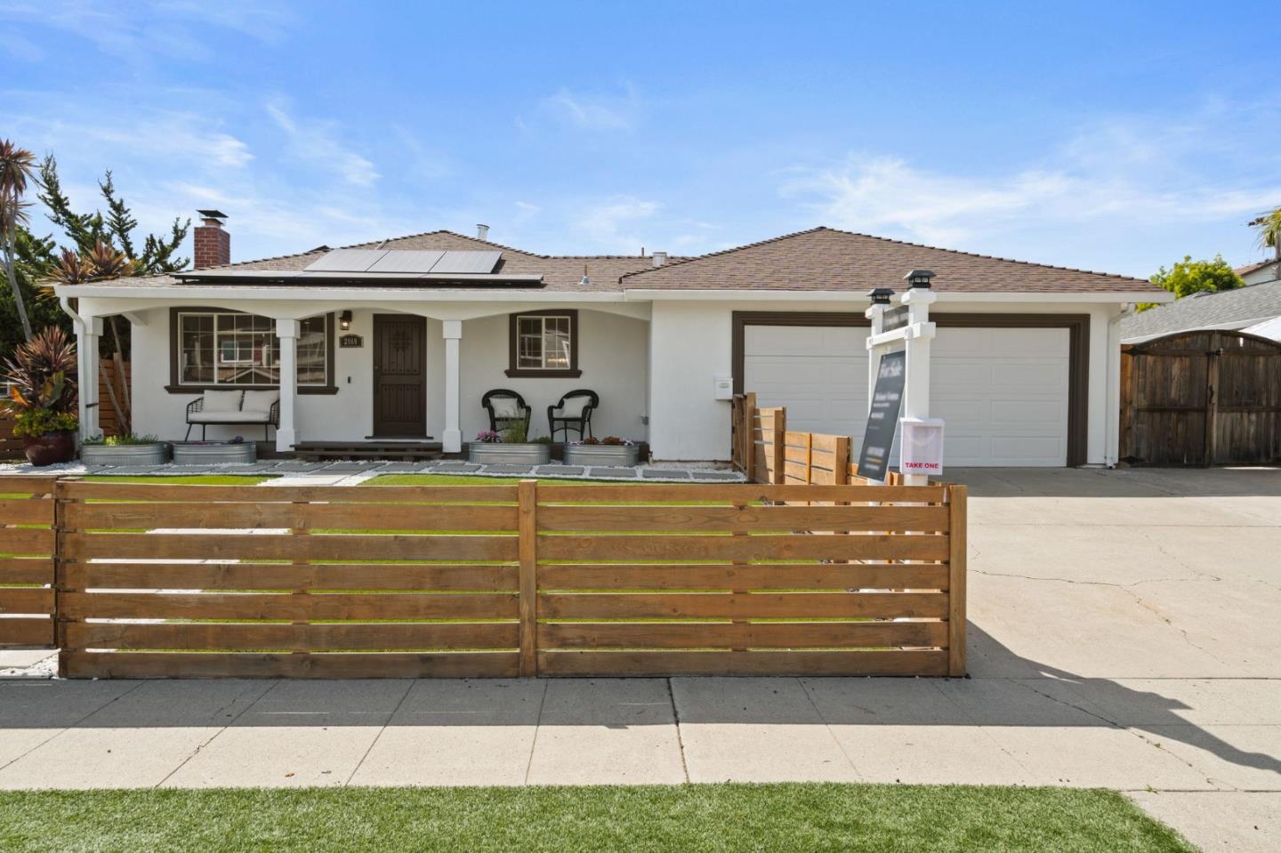 Exquisite move-in ready single-story home! Open floor plan seamlessly connects the living, kitchen, & family rooms. Perfect for entertaining. Remodeled kitchen shines as the heart of the home. Sleek, modern cabinetry, new SS professional grade appliances & sprawling island w/easy to maintain porcelain slab counters, seating, and drawers. New stylish luxury vinyl installed in all living areas. 1 yr warranty on all renovations. Primary bedroom w/spa-like ensuite & generous closet with custom organizers. 2 guest beds are bright & large w/sizable closets w/organizers. Updated guest bath w/vessel sinks, sophisticated marble counters & stylish vanity. Large soaking tub & walk-in shower are perfect for relaxing. Versitile garage conversion provides a private bedroom & living space. Perfect set up for guests w/a coffee bar w/sink, wine fridge & cabinets. Could also be used as a home office, entertainment room, or gym. Backyard oasis w/drought tolerant landscaping, artificial turf, a large patio w/ample space for dining. Pristine pool & outdoor shower provide hours of endless fun. Large size yard perfect for storage sheds, RV's or more parking. Updated electrical panel, owned solar, EV charging station. Walk to parks & top schools. Close to fwys, farmers markets & restaurants.