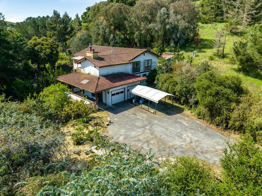 1316 Searle Road is privately nestled among the surrounding trees consisting of approximately 5 acres.. The home is approximately 2,449 square feet with four bedrooms and three full bathrooms; one bedroom and one bathroom can be found on the ground floor. Enter through the foyer, up the staircase to a large open floor plan with kitchen, dining area, and living room that opens to a tile floor and covered balcony. Through the kitchen, you can find yourself in a private backyard retreat backing up to the natural vegetation. The primary suite and remaining two bedrooms and bathroom can be found just off the kitchen upstairs. The garage has been converted with built in cabinets and tile floor. From the ground floor, you can find a large cellar area for additional storage. The property is located just off Highway 101 and Highway 129, making it great for commuting. All personal property left on the property will be included in sale. Including furnishings, RV, Spa etc. RV and spa are not in working condition.