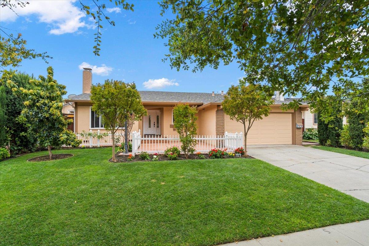 Welcome to this lovely Blossom Valley home. Featuring 3 Bedrooms 2 full bathrooms approx. 1,775 sq. ft of living space on 6,098 sq. ft lot. This home features a family room with French doors, hardwood flooring, marble fireplace, open kitchen floor plan with granite counter tops, tiled flooring. Updated hall bathroom with stone tile flooring, walls and granite vanity tops. Larger master suite with French doors leading to backyard. The master bathroom features jetted tub stone tiled flooring, walls and granite vanity top. The front yard tastefully landscaped with stamped concrete in a partially fenced entry. The backyard is setup for entertaining with paver patio, BBQ, bar, with stamped concrete for low maintenance, matured fruit trees. Other upgrades are newer central force heat and Ac. This home is a must see!