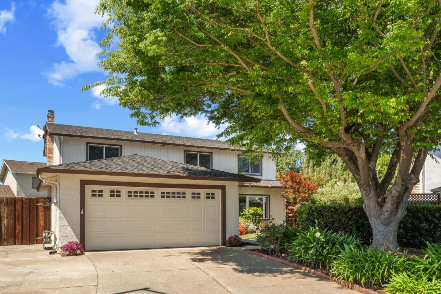 Live in one of the most desirable locales in Morgan Hill - centrally located and only a short walk from Paradise Elementary School, walking trails, Paradise Park, Starbucks and shopping. As you walk inside, you'll find most everything has been recently updated, from the flooring to the paint and all the fixtures. The bright and spacious home hosts a large downstairs bedroom, new hardwood floors, formal living and dining room. The family room has a cozy fireplace and opens to an updated eat-in kitchen with a Chef-grade Thermador stainless steel gas range and granite countertops. Upstairs find the primary suite, with a large walk-in closet, as well as three additional large bedrooms. Enjoy California living year around on your back paver patios while your kids & pets play on the expansive grass areas. 2-car garage.