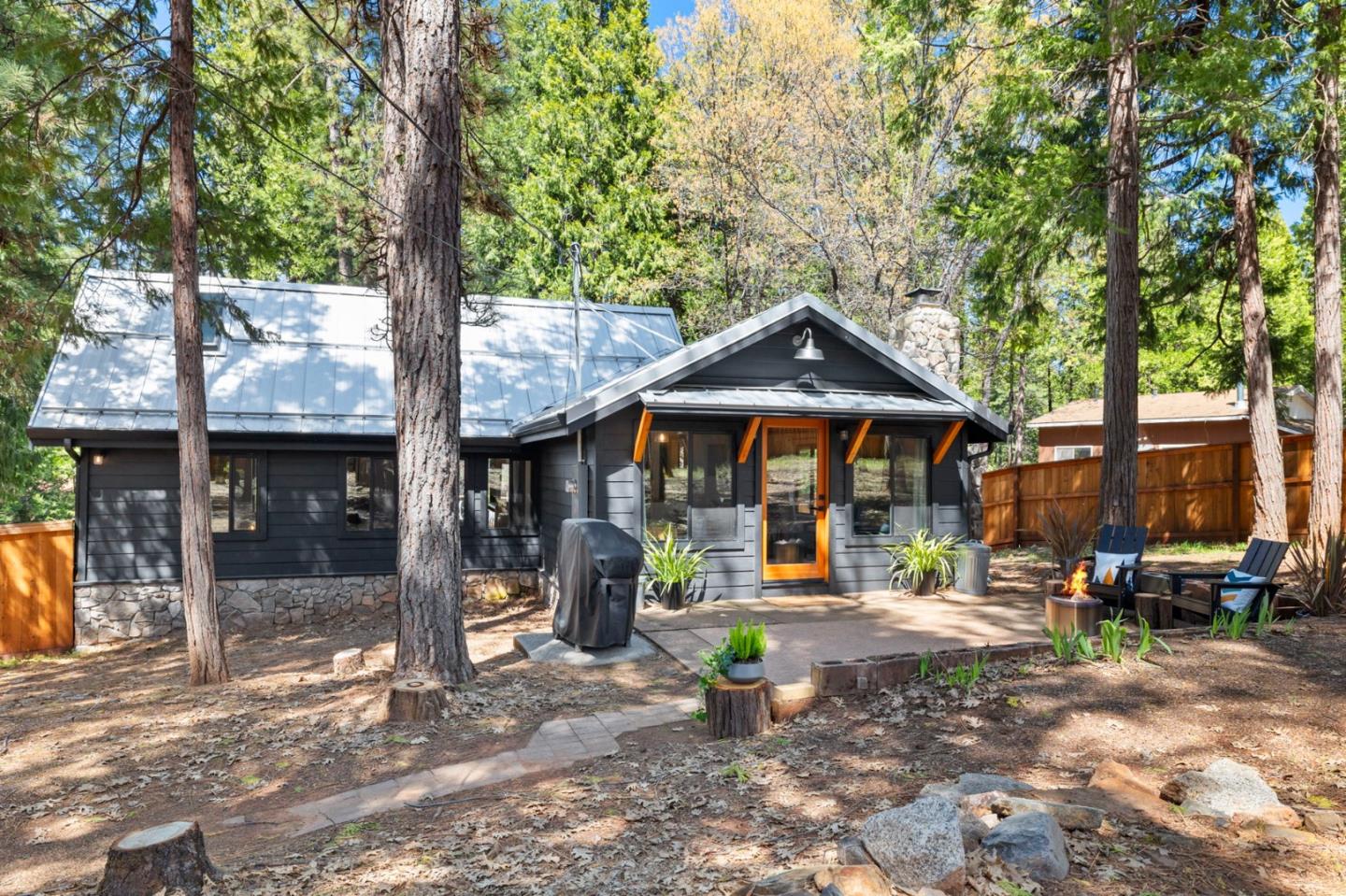 Transport to 1940s rustic charm meets modern comfort in this meticulously remodeled miner's cabin in Cedar Ridge. Stripped to studs and rebuilt in 2021, it boasts fire-resistant siding, a sleek metal roof, and new rock trim. A refurbished fireplace centers the home beneath a soaring wood ceiling. Thoughtful upgrades include a new furnace, AC, windows, doors, indoor laundry, and parking for six. A cedar fence encloses the half-acre property for privacy. Nearby, Cedar Ridge's private lake offers sandy beaches and BBQ areas. Just 20 minutes from downtown Sonora, with Dodge Ridge Ski Area 45 minutes away and Yosemite National Park 90 minutes, this cabin offers vintage allure with modern amenities, promising a captivating lifestyle straight out of Dwell Magazine. **Furnishings negotiable** **Mandatory amenities fee is $275 annually**