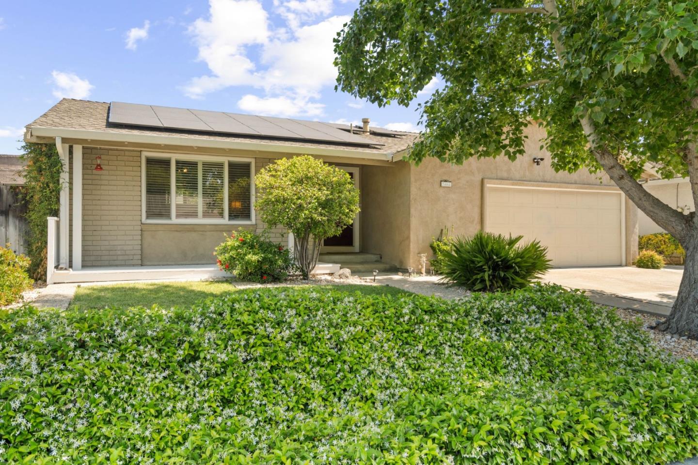 Well-maintained & tastefully updated single-story Blossom Valley home with oversized backyard. Embrace the convenience of owned solar power w/ 20 panels - 743 kWh! This home features 3 Beds & 2 Baths with 1,531 SF on a 7,000 SF Lot. Discover a sought-after layout with seamless flow from formal entry, separate living room, Kitchen with adjacent Dining Area & step-down family room w/ vaulted ceiling - perfect for both entertaining & daily life. Kitchen showcases modern SS appliances, a wine fridge, built-in microwave, granite counters, custom cabinetry with concealed lights, ample storage and bar seating for two. Retreat to the Primary Bedroom which has mirrored closet doors and patio access. Add amenities: hardwood floors, remodeled baths, cop plumb, dual pane windows, recessed lights, shutters, ceiling fans, refaced exterior stucco & 2-Car garage. Outside, indulge in a backyard oasis complete with patio, wood decking, lemon tree, vibrant plants, flowers, & sizable shed. Lots of space for possible ADU. EZ Commute access to 85, 87 & 101 Freeways. Convenient Location close to Oakridge Mall, Kaiser Hospital, Playa del Rey Park and restaurants and shopping. Top rated Schools Frost Elementary, Herman Middle & Santa Teresa High. All Section 1 Termite Work Completed. Move-in ready!