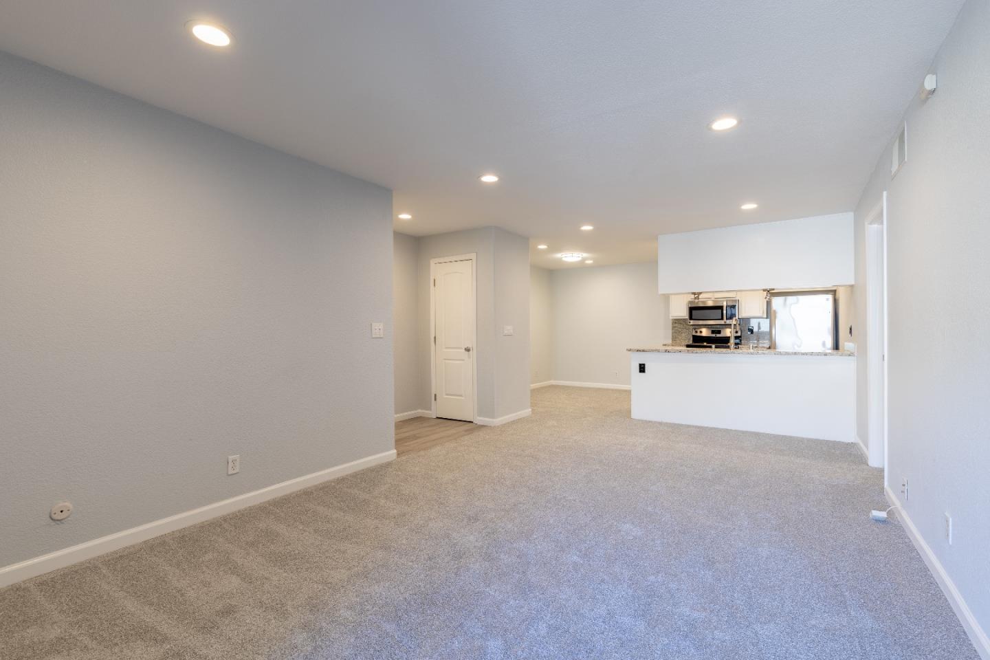 Welcome to Mission Grove gated community in San Jose! This 2 bedroom, 1 bath unit boasts brand new carpet throughout, located on the top floor, offering a tranquil corner setting. Enjoy the convenience of 1 carport parking space along with a 2nd permit parking spot, plus your own private deck perfect for relaxing or entertaining. Step inside to discover recessed lighting illuminating every room, highlighting the fresh atmosphere. The kitchen showcases elegant granite countertops, inviting you to create culinary delights. Residents of Mission Grove enjoy a wealth of amenities, including security gates, a clubhouse, a refreshing pool for those warm days, and maintained landscaping throughout the community. Laundry facilities are conveniently located within the community. Convenience is key with easy access to freeways, shops, groceries, restaurants, and parks, ensuring you have everything you need at your fingertips. The HOA covers essential services such as water, household trash, landscape maintenance, exterior maintenance, pool, clubhouse, fitness center.