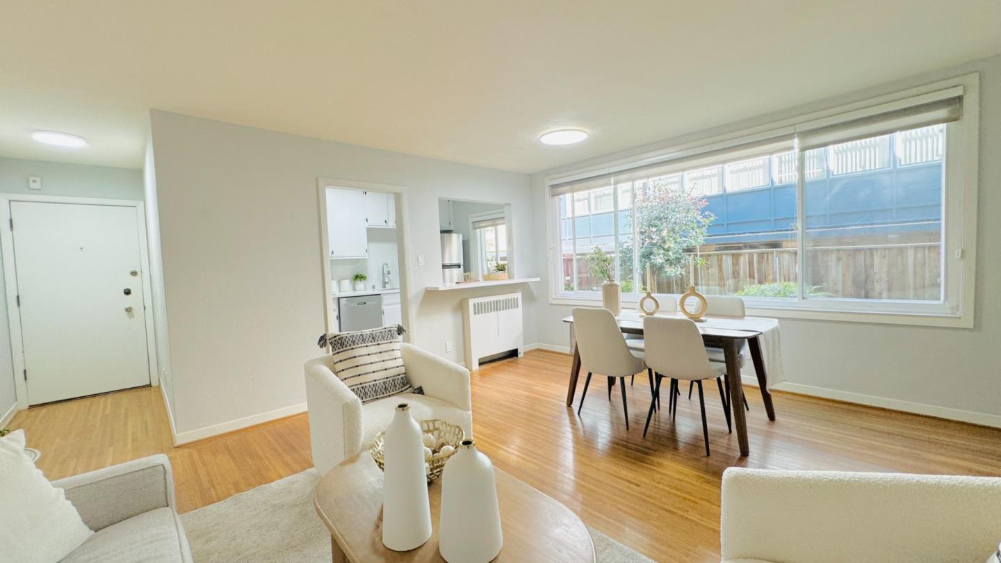 Delightful recent remodlled two-bedroom, one-bathroom condo on the first floor, nestled in the sought-after San Mateo area. Monthly HOA dues include HEAT for the unit, water, garbage, insurance for the building. This unit is uniquely positioned in a prime, secluded spot within the building, offering a quiet retreat away from El Camino. Step into a welcoming atmosphere, highlighted by updated hardwood flooring. The layout features an open plan that seamlessly connects a spacious living room, a dining area, and a bright kitchen complete with a breakfast bar. The bathroom is sizeable, and the interior boasts fresh paint and new lighting fixtures. The community offers a resort-like experience with amenities such as a swimming pool, a clubhouse, a dedicated parking space for one car, and private storage. Its enviable location is conveniently close to Burlingame, an array of shopping options, downtown San Mateo, and the Caltrain station. Experience this lovely home for yourself!