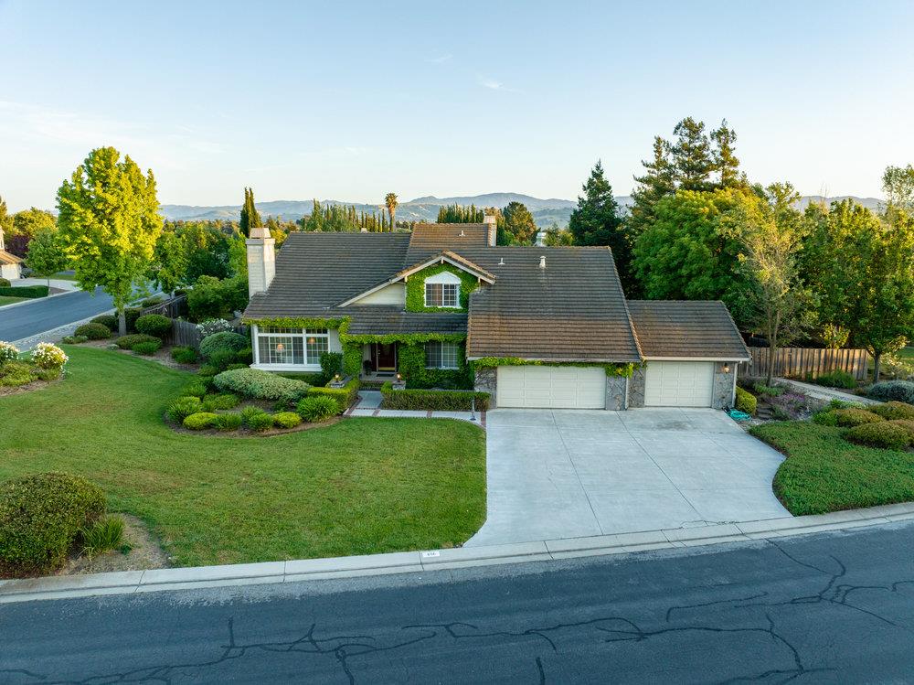 Welcome to 306 Vista de Oro in the gated community of Cielo Vista in Hollister, CA. The two-story home has 4 bedrooms plus a den and 3 and a half bathrooms on a .56-acre lot. Two rooms located downstairs. The living rooms both feature a fireplace, while the u-shaped kitchen offers ample cabinetry, upgraded countertops and lighting, breakfast bar, and opens to the breakfast nook and walk in pantry. The kitchen connects to a living space with a wet bar. Ground floor owner's suite has high ceilings, a private patio, walk-in closet, double sinks, sunken tub, bidet, and shower stall. Downstairs, the den overlooks the front porch and entry garden adorned with luscious ivy. Upstairs hosts 3 bedrooms and two bathrooms, including a guest suite with its own bathroom and walk-in closet. One room serves as an office with built-in cabinetry and shares a common bathroom with another bedroom. Additional amenities include an indoor laundry room, air conditioning, and vaulted ceilings. A 3-car garage with large side yard spaces for potential oversized parking, RV storage, shop, or ADU for income producing or multi-generation living. Explore the beautiful mature landscaping to discover planter boxes, fruit trees, flowers, multiple patios, and play structures. Located in an HOA.