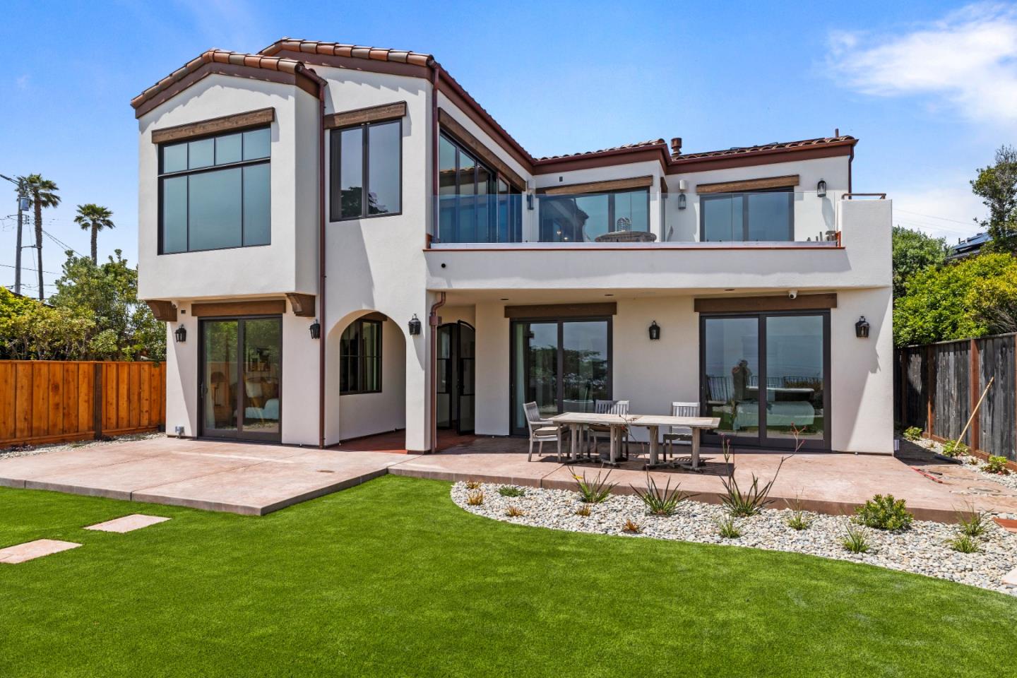 NEW BUILD IN HIGHLY SOUGHT AFTER OPAL CLIFF DR LOCATION, OPTIMALLY SITUATED AT THE 100 YEAR BLUFF SETBACK (50+FEET FROM THE BLUFFS EDGE). INFLUENCED BY THE OCEAN VILLAS OFF THE COAST OF SPAIN, THIS 3373 SQUARE FT OCEANFRONT ANDALUSIA. THE MOMENT YOU ENTER, YOU WILL BE INSPIRED BY THE VIEWS AND THE TASTEFUL USE OF NATURAL MATERIALS. FORGED IRON FIXTURES, NATURAL STONE, HANDMADE SALTILLO TILE, MESQUITE, ALDER, AND WORMWOOD ARE SEEN THROUGHOUT. THIS HOME FEATURES FOUR EN-SUITE OCEAN VIEW BEDROOMS, 2 HALF BATHS, AN ELEVATOR, OFFICE, AND UTILITIES ON BOTH FLOORS. THE KITCHEN IS APPOINTED WITH THE FINEST OF AMENITIES AND ANCHORED BY A STUNNING IJEN BLUE STONE ISLAND. WARMTH RADIATES FROM THE CUSTOM CABINETRY COMPLIMENTED BY HARDWOOD FLOORS AND VAULTED BEAM CEILINGS. A CUSTOM BUILT BEVERAGE CENTER FEATURES ROLL OUT LIGHTED DRAWERS, A MIELE WINE COOLER AND A PERLICK BEVERAGE REFRIGERATOR. THE PRIMARY SUITE OFFERS FULL OCEAN VIEWS AND VAULTED BEAM CEILINGS AS WELL AS A FIREPLACE. SLIDING DOORS ACCESS THE UPPER DECK. EASY ACCESS FROM BOTH LEVELS TO OCEAN VIEWS, SURFERS AT SHARKS COVE, AND GLIMPSES OF SEALIFE. RELAX IN THE SPA, COMMUNE AROUND THE FIRE PIT OR JUST BASK IN THE WARM SUN ON THE PATIO OR DECK. TRULY ONE OF THE FINEST CUSTOM HOMES ON OPAL CLIFF EVER OFFERED.