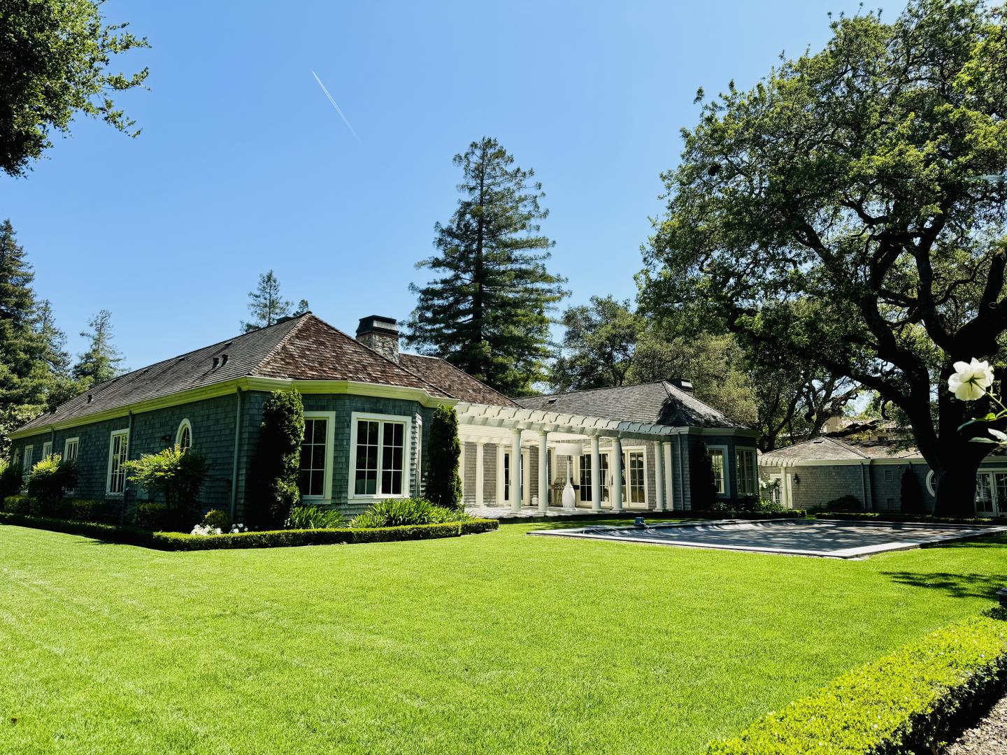 Discover the elegance of 187 James Avenue, Atherton, a prestigious single-level estate in the esteemed Lindenwood neighborhood. Built in 2012 by Tapia Construction and designed by Bob Glazier, this home blends traditional design with modern luxury. It features towering tray ceilings, crisp white millwork, and a neutral color palette. Offering four bedroom suites, two half baths, and a chefs kitchen with state-of-the-art appliances and an oversized island, it caters to both comfort and entertaining. The open floor plan and expansive windows fill the home with natural light, enhancing the warm hardwood floors throughout. An exquisite 1-bedroom guesthouse, a three-car detached garage, a pool, and a back terrace with a fireplace and trellis add to the home's appeal. Landscaped gardens create a private oasis around the pool. Advanced security systems ensure peace of mind, and proximity to prestigious Menlo Park schools offers excellent educational opportunities. Set on nearly an acre, this home promises privacy and exclusivity.