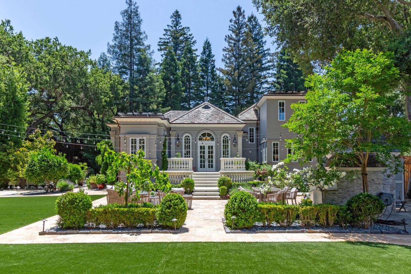 A truly one-of-a-kind creekside estate on more than .60 acres, located just steps from downtown. Every inch of this gorgeous home and guest cottage was meticulously crafted with the finest finishes, custom millwork, and stunning stone details. Designed to cater to modern living, the grand living spaces flow seamlessly from one to the next and extend out onto lovely terraces overlooking the lush grounds. The living/dining room enjoys windows and French doors to the yard, the kitchen boasts striking marble countertops, and the formal living room has a focal-point fireplace and a private terrace. On the main level you have the palatial primary suite with a sitting room, and a rich executive office. Upstairs, three bedrooms including the spacious secondary suite center around a comfortable family room. The professionally designed and landscaped grounds include an outdoor kitchen, spa, vast lawn, entertaining patios overlooking the creek. The epitome of luxurious indoor/outdoor living!