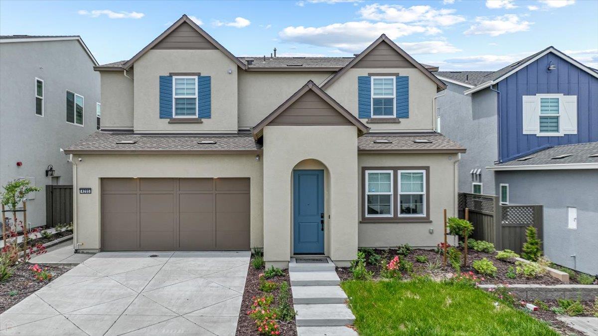 This is just a 6 month old brand new home. It is EAST facing 3373 sqft home in 5023 sqft lot and ready to move-in. This is a single family home with an additional built-in space to add ADU/Multi-Gen suite. It has total 4 bedrooms, 3 full baths, 1 half bath, loft, Dining area, Living room, Office room, California room, Deck in master bed, storage room, Utility room, walk-in closets and 3 car garage. This home has big windows which gives plenty of natural sunlight and fresh air. Upgrades include cabinets, quartz countertops with full back splash, Stainless Steel Appliances, recessed lights, a large center island, hardwood floor on the first floor and second floor. Fully paid solar panels. Master bathroom has dual sinks, soaking tub, and standing shower. Whole house is black and white themed beautifully With semi finished backyard having stamped concrete and turf. Home has pre installed Reolink security cameras with PoE, water softener and under sink RO water filter. Recently installed Custom made blinds. House comes with Bertazzoni Italian branded conventional Oven, Microwave and Cooktop with Samsung Bespoke Refrigerator, Washer and Dryer. Also Seller paid around $80,000 for upgrades. It's located in good neighbor hood, good school district and near by ACE train station and Parks.