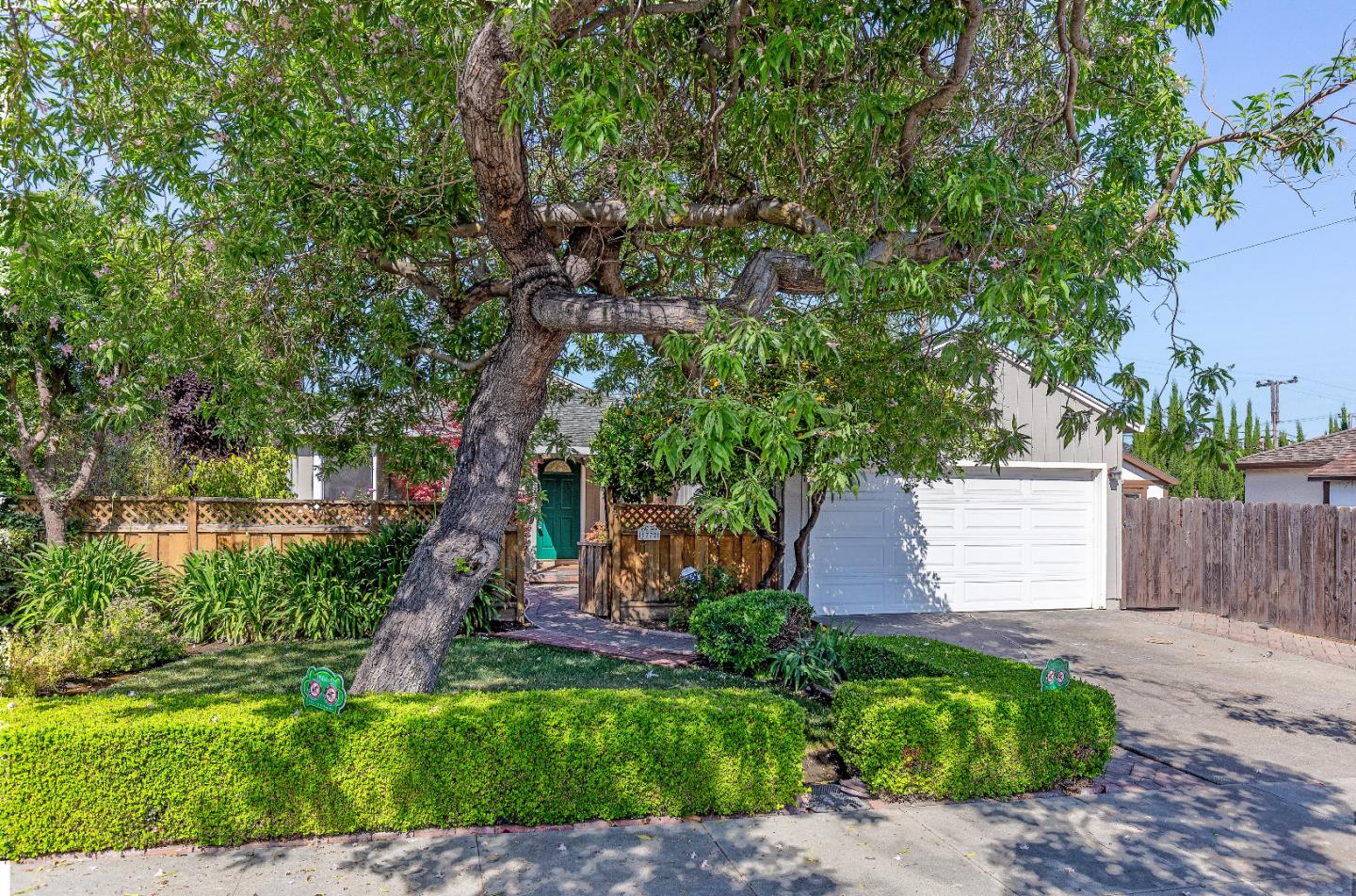 Discover this Briarwood neighborhood gem nestled on a quiet, tree-lined street. Oranges in abundance, a vibrant Japanese maple, and gorgeous roses welcome you as you pass through the large, private courtyard and enter this bright and airy, centrally-located Santa Clara home. It features spacious bedrooms, including the master suite; a modern, capacious, eat-in kitchen with granite counters and stainless steel appliances; large yet cozy living room with a wood-burning fireplace; completely remodeled baths with quartz countertops and heated, lit mirrors; gleaming hardwood floors throughout; brand new heating and AC system (furnace, AC, and duct work); double-pane windows; and LED lighting. Walk to Briarwood Elementary just a few blocks away. Easy access to Whole Foods, Costco, Santa Clara Square, Machado Park, Eddie Souza Park, and walking trails. Quick access to Lawrence & San Tomas Expressways, Highways 85 & 101, and El Camino Real. Ideal location for commuting. This fabulous yet affordable home even provides a wonderfully short commute to some of the top Bay Area workplaces: 2 miles to NVIDIA and Kaiser, 3 miles to Apple Park and AMD; 8 miles to Google; 13.9 miles to Stanford.