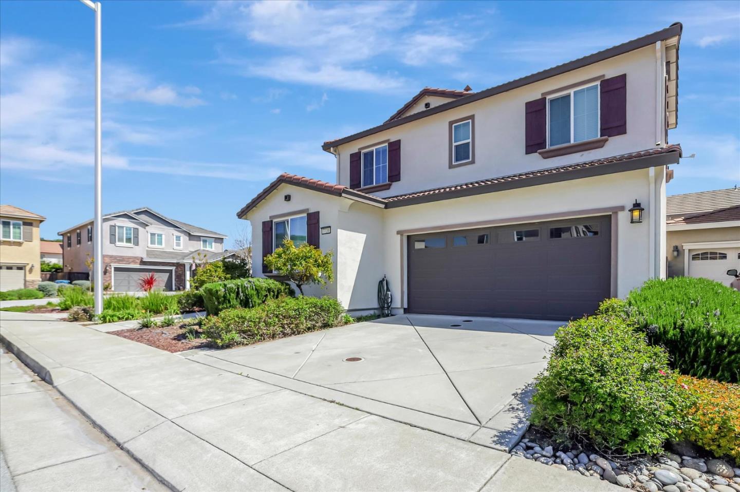 Picture perfect newer 2 story home in a gated community. Open floor plan with one bedroom & full bathroom downstairs, 3 beds/2 baths upstairs with a loft/office/playroom. gourmet kitchen with a nice sized island, upgraded cabinets, granite countertops, stainless steel appliances, recessed lights, pantry. Wood floor on the first floor. primary bedroom with large walk-in closet. Central A/C and Heating, Solar/owned. Glass sliding door off kitchen/dining opens to paved backyard, great for family gathering and entertaining. This community offers beautifully landscaped greenbelts, access to miles of paved trails. Close to playground, dog park, and minutes away from shops, restaurants, wineries, golf courses, Gilroy shopping outlets, Gilroy Gardens and easy commute access to 101 or Santa Teresa Blvd.