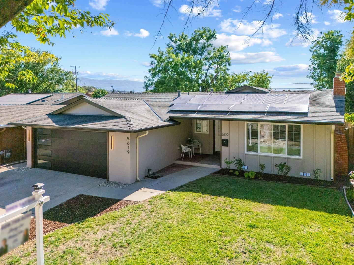 Welcome to this refreshing single story 4-bedroom, 2-bath home in the heart of Blossom Valley. As you enter, you are greeted by a gracious formal entryway leading to a stunning new kitchen. The kitchen boasts quartz countertops, a spacious breakfast bar, ample cabinetry, and seamlessly flows into the dining area, which opens to the backyard through sliding glass doors. The living room centers a classic fireplace, adding warmth and charm. The primary bedroom offers a retreat with its brand-new ensuite bathroom, complete with a walk-in shower. Hall bathroom showcases ample countertop, and an inviting shower over the tub. The expansive backyard is an entertainer's dream, featuring a sparkling pool and multiple patio areas perfect for al fresco dining. Additional highlights of this meticulously updated home include central AC for comfort year-round, fresh interior and exterior paint, a 2-car garage, new flooring throughout and fully paid off solar system. Conveniently located near shopping, dining, and with easy access to highways 85, 87, and 101, this home offers a generous sized lot of over 8200 SF. Don't miss your chance to own this gem of a home where modern elegance meets everyday convenience.