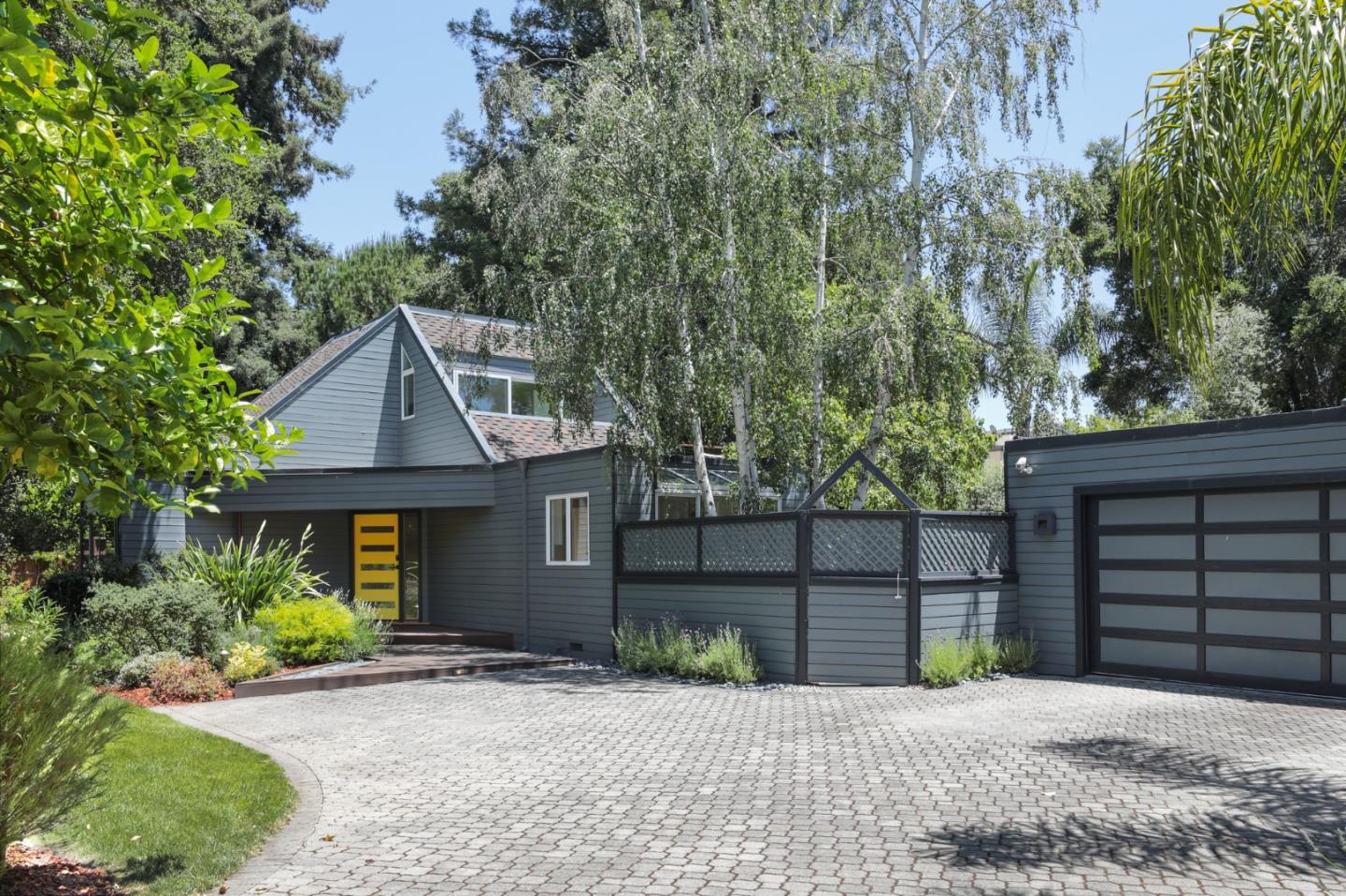 Located down a private and paved driveway, this luxurious modern home was significantly and thoughtfully remodeled in 2014 with attention to detail at every turn. Chef kitchen with stainless steel appliances including Thermador double oven, Miele stove and Sub-Zero refrigerator. Open dining room flows to the outdoors as well as the well designed family room with automatic shades, high ceilings, multiple windows and garden views. Main floor included office or possible additional bedroom with a curved bank of windows. Beautifully appointed bathrooms with custom vanities and tile detail.Upper level bedroom suite offers an adjacent impressive epi deck patio with garden and tree-top views. You will be wowed by the natural light, serene- zen feel, beautiful rift sawn white oak floors, clean lines, and thoughtful design. Exceptional yard with multiple entertaining spaces, sparkling pool, lawn, privacy and planting beds. Close proximity to Facebook, Stanford University, shopping and HWY 101.