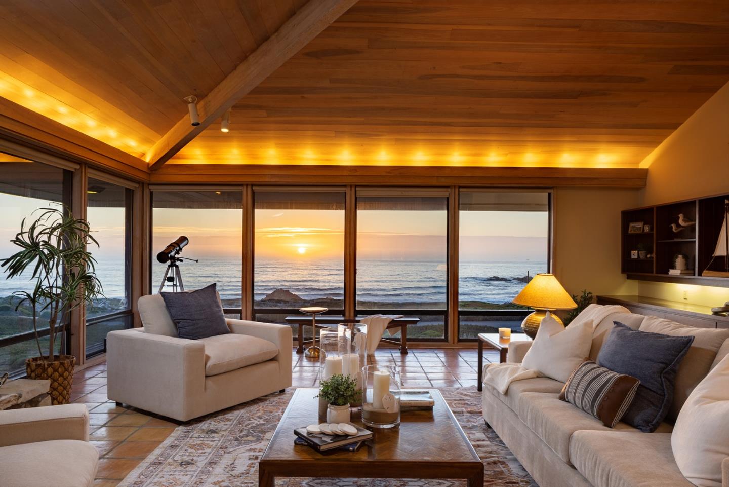 Overlooking Fanshell Beach and the magnificent coastal views of the tip of Monterey Peninsula, this remarkable property is nestled among the natural sand dunes on 17 Mile Drive. The front of the house enjoys commanding ocean views to the west and the rear of the house borders hole #4 of the world-renowned Spyglass Hills Golf Course. The 3,432 SqFt 4 bedroom/4.5 bathroom home features exquisite beamed ceilings, a spacious living room with stone fireplace, an impressive view deck with hot tub, and spacious, main level master suite, all enjoying the panoramic views. The lower level consists of three, private, en-suite bedrooms with views of the natural dunes and ocean beyond. Just a short drive to all the wonderful restaurants and shops at Spanish Bay and The Lodge, this property offers beachfront living at its finest and a rare opportunity for world-class location, unique architecture, and some of the best views on Earth.