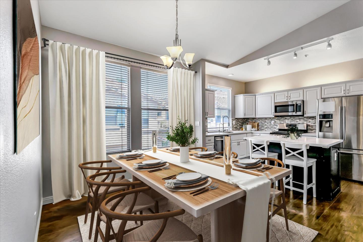 Discover this exquisite 2-story Town Home featuring 2-bedroom, 2-bathroom end unit townhouse ideally located in the desirable CITY LIGHTS Community. Its bright and expansive open layout is complemented by a modern kitchen featuring stainless steel appliances, updated quartz countertops. Luxury vinyl plank flooring adds a touch of sophistication throughout. The primary bedroom boasts a walk-in closet and a well-appointed en-suite bathroom. Step outside to your private balcony offering a tranquil retreat. Yes, this end unit comes with a 2-car (side by side) garage and low HOA fees. Perfectly situated for convenience with nearby amenities, shopping, dining, parks, and effortless freeway access. The 2nd floor features all living space: As you walk up stairs you will step into the living room, dining room, kitchen, bedrooms and bathrooms. *** Surrounded by trees and just steps away from an open grass area, you will enjoy lovely evenings and morning walks. But you must hurry to the OPEN HOUSE this weekend so you can see for yourself the opportunity that awaits for you. WELCOME HOME! +++ PHOTOS ARE VIRTUALLY STAGED +++