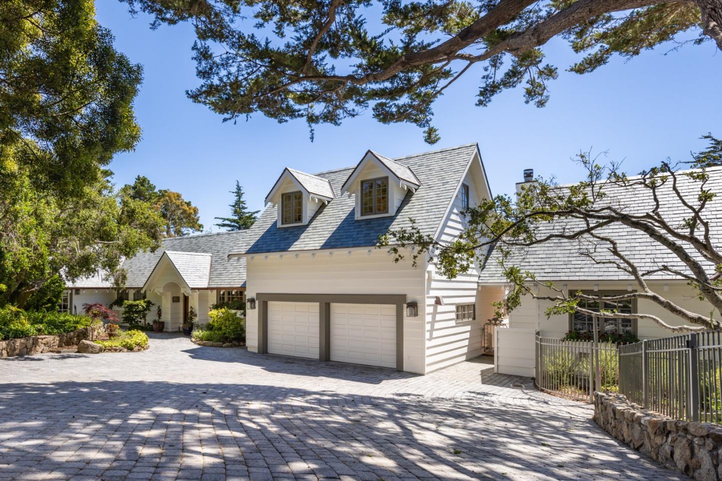 Welcome to "En Vacances," a stunning, light, bright ocean view estate that makes you feel as if you're on holiday every day. Nestled within the gated community of Pebble Beach, this stylish home enjoys ocean views from both levels. This 3BR, 3.5BA home gazes out at the breathtaking beauty of the Del Monte Forest and Pacific Ocean sunsets. The main level opens to large, sunny patios for ideal indoor/outdoor living and offers 2 bedrooms with en suite bathrooms plus a home office. On the second level, the spacious primary suite boasts expansive ocean views, a private deck, a fireplace, and a luxurious bathroom with an enviable closet. For guests, the 1BR, 1BA guest house includes its own kitchen, living and dining rooms, and view deck. The lushly landscaped yard leads to sun-filled patios and an in-ground hot tub. Located in the prestigious estate section of Pebble Beach, this is a rare opportunity to own a unique property in one of the most coveted locations on the Monterey Peninsula.
