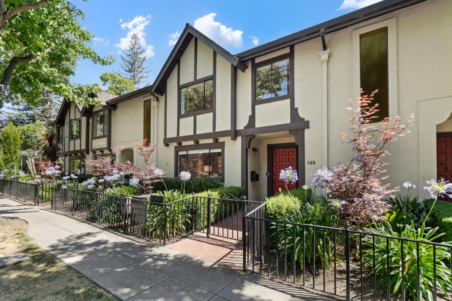 Storybook charm in the heart of Palo Alto! This elegant and spacious townhouse, on a shady and quiet tree-lined street, is just three blocks to all the wonderful shopping and dining of downtown Palo Alto. Enter through the front gate, down the brick walkway, and into the landscaped front yard. Inside, enjoy bright spaces, thoughtfully designed built-ins and cabinetry, box beam style ceiling moldings, hardwood floors and new carpet. The updated kitchen and dining area faces the sun drenched paver patio with views of a vibrant bougainvillea. The patio also has extra storage and gated access to the common areas, parking (two designated spots plus additional storage) and a heated, crystal blue pool! Upstairs you'll find the large primary suite with double closets and a gorgeous renovated bathroom featuring custom cabinetry and an oversized glass-enclosed shower. The laundry area, a hall bath and an additional guest bedroom complete the upstairs floor plan. In addition to the benefits of being so close to the wonderful downtown Palo Alto area and Stanford campus and mall, Whole Foods and Safeway, the post office and library, Palo Alto Medical Foundation and three movie theaters, this home feeds into top schools, making it a sought after personal residence or investment.