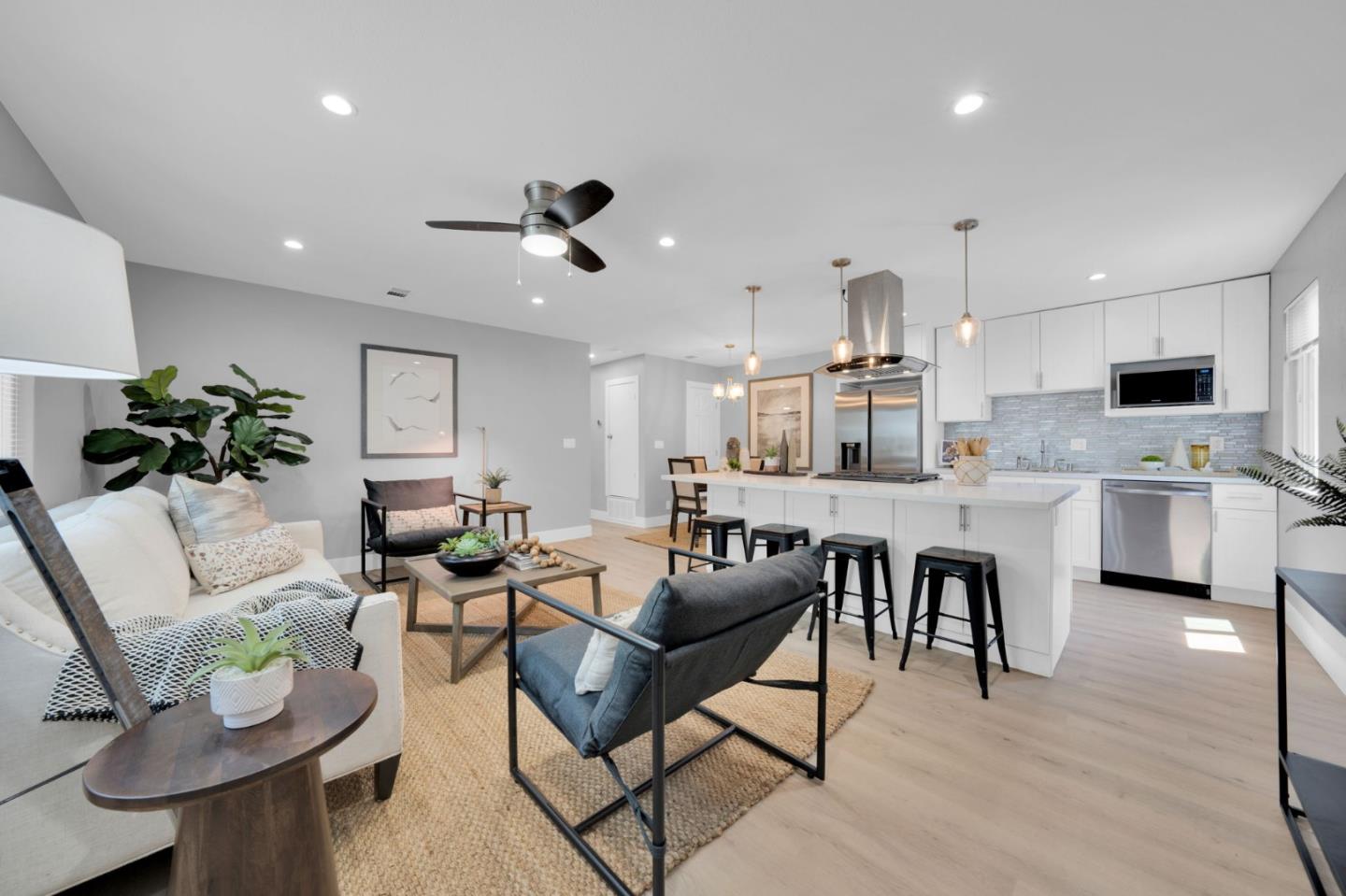Come experience the charm of living in desirable Milpitas! Completely renovated from top to bottom, step inside this upstairs single-level condo to discover a freshly painted interior, sleek LVP flooring, and modern baseboards. The heart of the home shines with the removal of the dividing kitchen wall, transforming the living/kitchen area into a spacious open-concept floor plan a feature that truly makes this unit one of a kind! The kitchen features white cabinetry, a designer backsplash, a large quartz island as well as brand-new stainless steel appliances. Enjoy a bright and spacious modern bathroom, expanded to fit a double sink vanity. The generously sized primary bedroom also features an enlarged walk-in closet. Abundant sunlight streams in through the newly installed Milgard windows, highlighting the attention to detail evident throughout even the furnace is brand new! The unit comes with a private 1-car garage with an additional driveway space and an assigned storage closet. With Calaveras Plaza, Sierra Center, and the Great Mall just a quick drive away, convenience is at your fingertips. Enjoy top-rated schools for all ages, easy access to freeways 880/237/680, and the Milpitas BART station. Dont miss out on calling this lovely place home!