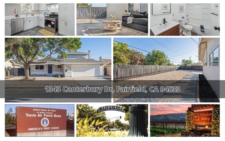 1343 Canterbury Dr is a Single Family Residence in Fairfield, CA 94533. This 2,007 square foot property sits on a 5,662 Sq Ft Lot and features 4 bedrooms & 3 full bathrooms. It is currently priced at $501,000 and was built in 1962. This address can also be written as 1343 Canterbury Dr, Fairfield, CA 94533.
