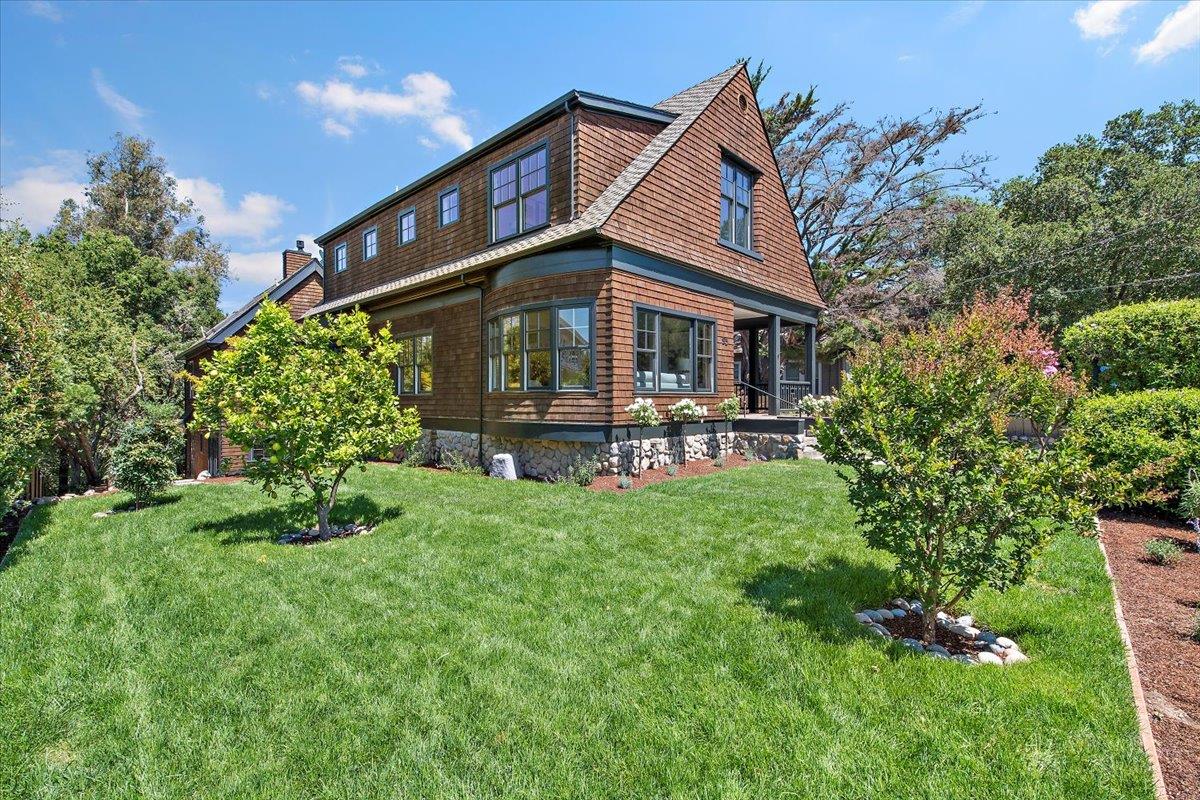 Celebrating one of America's most original and beautiful architectural idioms - this 19th century Shingle Style Home was extensively restored and expanded in 2000 to create an heirloom home of impeccable design and utility ideal for today's modern family living. Located on an iconic street steps from downtown this home offers the best in terms of location, history and modern floorplan. The main house marries formal and informal living with an elegant living room, music room, office and formal dining room featuring stunning bow windows, intricate hardwood floor inlays and custom lighting. A large kitchen, family room and breakfast room make up the informal living space and benefit from stunning open beam paneled ceilings. The upper floor houses a spacious primary suite with private deck as well as a "junior wing" featuring 2 bedrooms, bathroom and den. The lower floor has a large 2 car garage, bicycle room, rumpus room, 2 bedrooms and 2 bathrooms as well as a covered patio/summer room. The original carriage house was revitalized in 2000 and now features a 2 car garage/workshop with a 440SF ADU below with full kitchen and bath (Total 4490 SF) All of this is located on a beautiful ~20,000 SF graded and landscaped lot leading down to a seasonal creek with plenty of space for a pool.