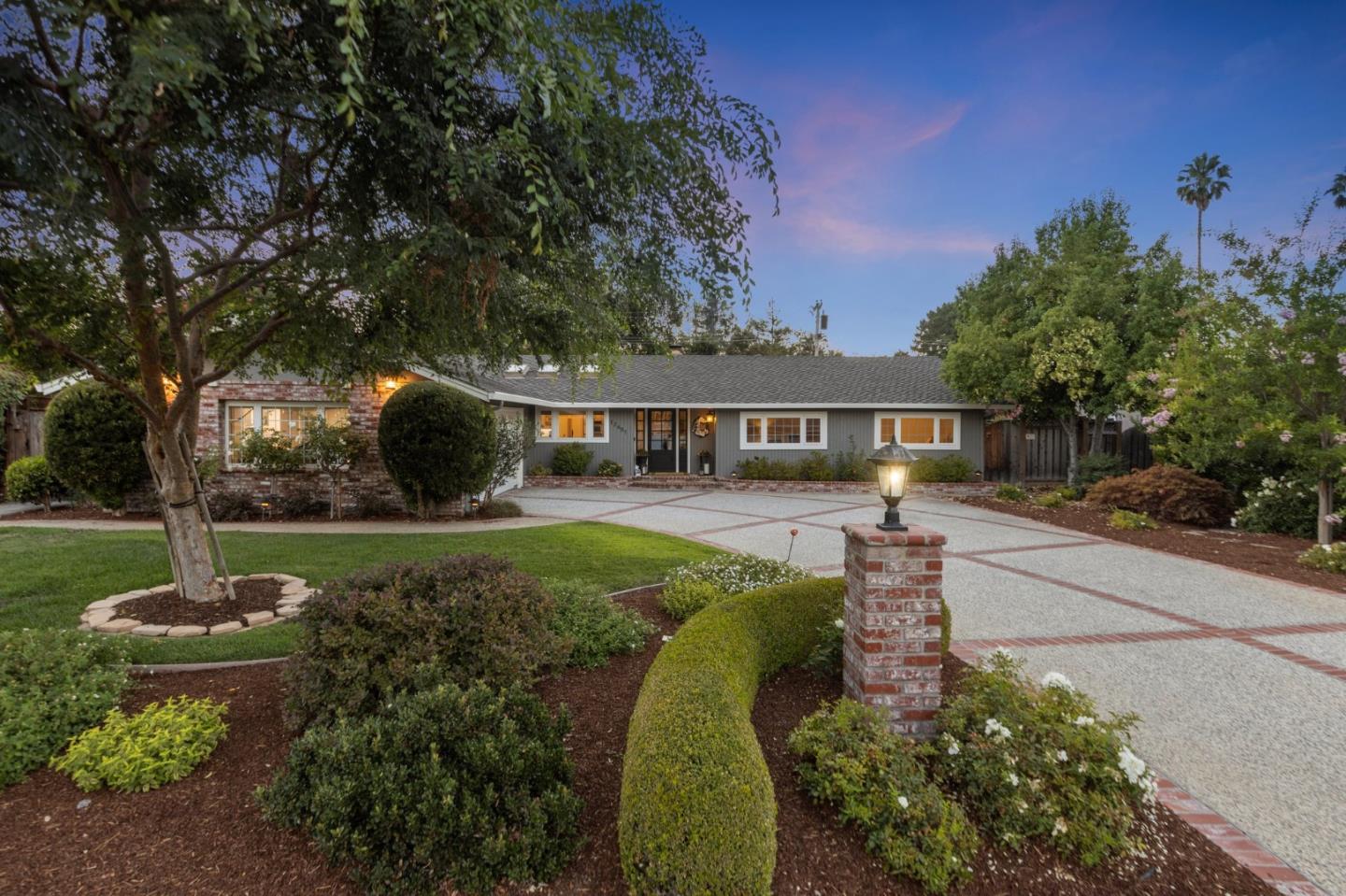Saratoga Woods beauty! Sprawling single-story on expansive 1/3 acre! Mature landscaping surrounds front porch entry opening to hdwd flrs thru-out main living, lg pic windows & skylights showcasing great open flrpln. Kitchen is perfect for culinary chef w/ prof grade appliances-sparkling quartzite countertops, skylights bathe space in natural light. Formal dining rm enjoys vaulted ceiling w/ lg windows framing picturesque views. Great rm is entertainer's dream! Volume ceilings & 12 ft slider bring outdoors in! Built-in cherry bar w/ black granite counters, SubZero wine refrig, built-in maple entertainment console. Well-appointed guest bdrms share 2 hall baths. Primary bdrm-a serene retreat w/ slider to backyard. Walk-in closet w/ organizers, luxurious bathrm sanctuary. Expansive backyard is oasis w/ flagstone & brick patios, bistro lights, lush foliage, composite deck. Tranquil fountain surrounded by artificial turf, blooms abound! Built-in outdoor sitting area w/ fire pit, lg cooking area- gas DCS BBQ, bev fridge, built-in cold storage, lg built-in umbrella, mounted television! Embodying comfort, luxury & practicality-perfect place to call home! Saratoga Woods neighborhood swim club, WVC, Downtown Saratoga, HWY 85, 280, Westgate Shopping! Top Private & Public Schools. This is it!