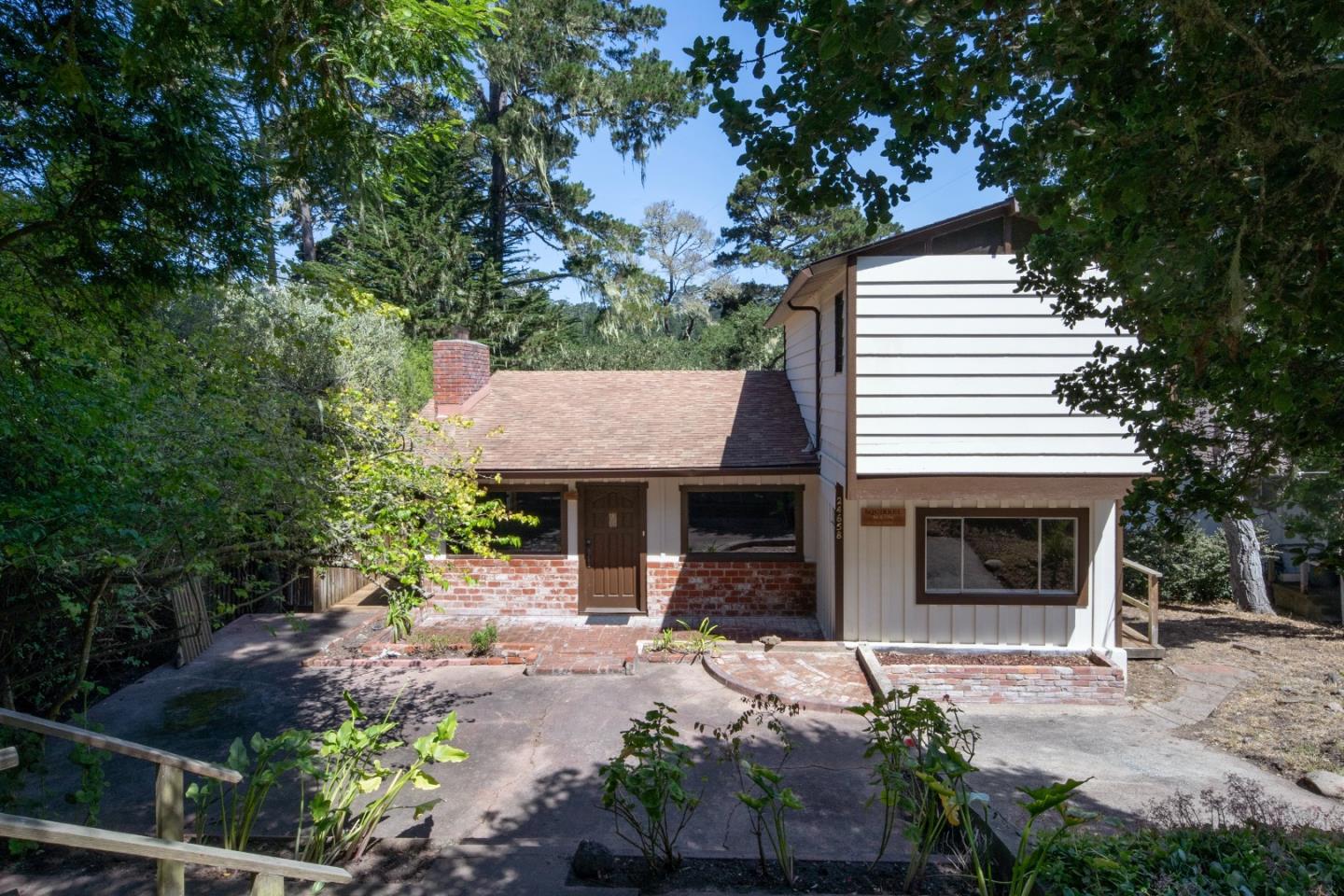 Nestled amongst the redwood and oak trees, dappled by sunlight, Squirrel Run offers a tranquil escape just minutes from downtown Carmel. Enjoy easy access to charming shops and restaurants, the renowned 17 Mile Drive into Pebble Beach, and the diverse activities of the Monterey area. Serene tree-top Pescadero Canyon views from the back deck beckons one to explore the entire large 12,400 sq ft lot, some of which is separated by cross-fencing and gates. Wood paneling, a wood burning fireplace, high vaulted ceilings and the kitchen updated approximately 20 years ago add to the hidden charm of this home. Wood floors appear to be under carpet in the living room and one bedroom. Located so close to everything, yet with that feeling of being removed from it all. Lots to do here with such great potential! Bring your contractor, your dreams and come consider the possibilities!