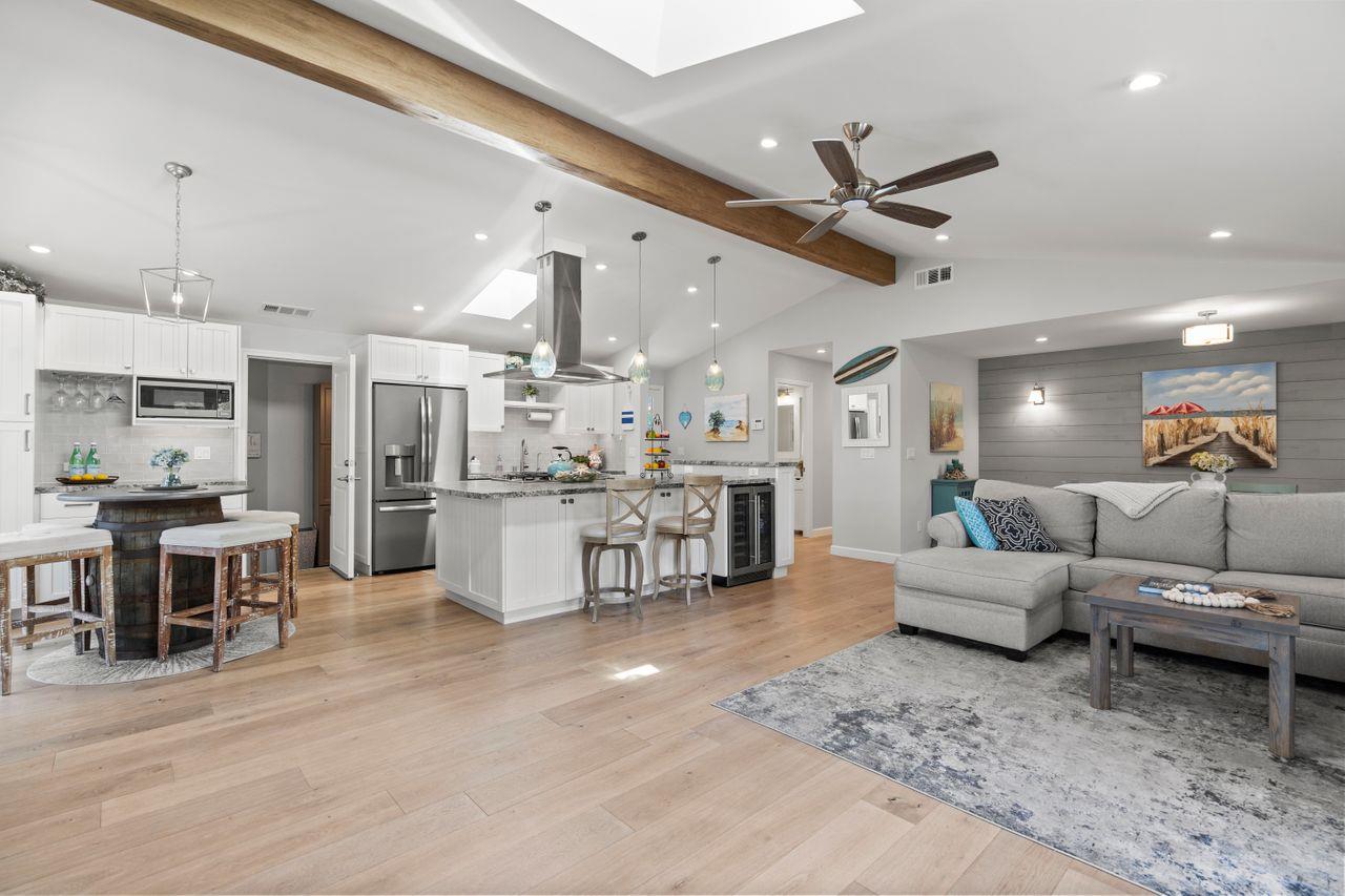 Discover your coastal paradise in the heart of Aptos with this meticulously remodeled gem. Nestled in a serene neighborhood this home seamlessly combines contemporary elegance with natural beauty. The property boasts immaculate curb appeal enhanced by beautifully manicured landscaping & flagstone pathway. This home features a stunning open concept floor plan ideal for both intimate family moments & larger gatherings. The gourmet kitchen is a centerpiece of the home, showcasing stunning Azurite leathered granite countertops paired w sleek black stainless-steel appliances. A large island w/ bar seating offers a casual dining option & is a perfect spot for entertaining. The master suite is a luxurious retreat featuring a spa-like master bath with NuHeat heated tile floors, heated towel bar, and double vanity with quartz stone countertops. The expansive backyard offers an inviting entertaining patio, bistro lighting, a lush lawn area & majestic native redwood, perfect for relaxation or hosting gatherings. Located just 8-minute walk to the beach! Enjoy all the charm that Aptos has to offer! Don't miss out on this gem!