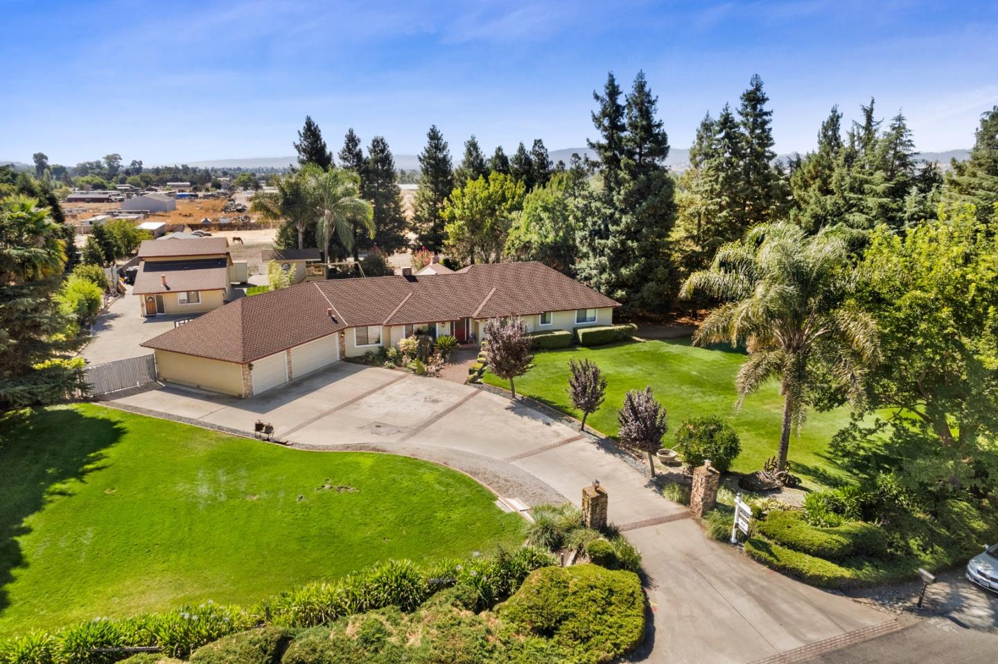 This rare horse property in a desirable quit neighborhood is available on almost 2.5 ac. Main house features 3 bedroom 2.5 baths with office and open floor plan with approximately 2,826 square feet of living area! Included is a 1bed 1bath in-law unit, perfect for a large family! Enjoy entertaining in the large, shady, private park like backyard. Perfect horse property with 60 ft. round pen, enclosed stalls 14ft x 24ft and tack room 13.5ft x 13.5ft, wash rack, horse tie area. Covered area for feed, large covered area by barn. Features additional space for home business, gym or studio or man cave!! RV/Boat parking and lots of storage space. Storage shed 18ft x 30ft. Backyard is fully fenced with easy access for maneuvering large vehicles and trailers! Rare opportunity for a tranquil living experience! The various opportunities of this property contribute to its desirability!!