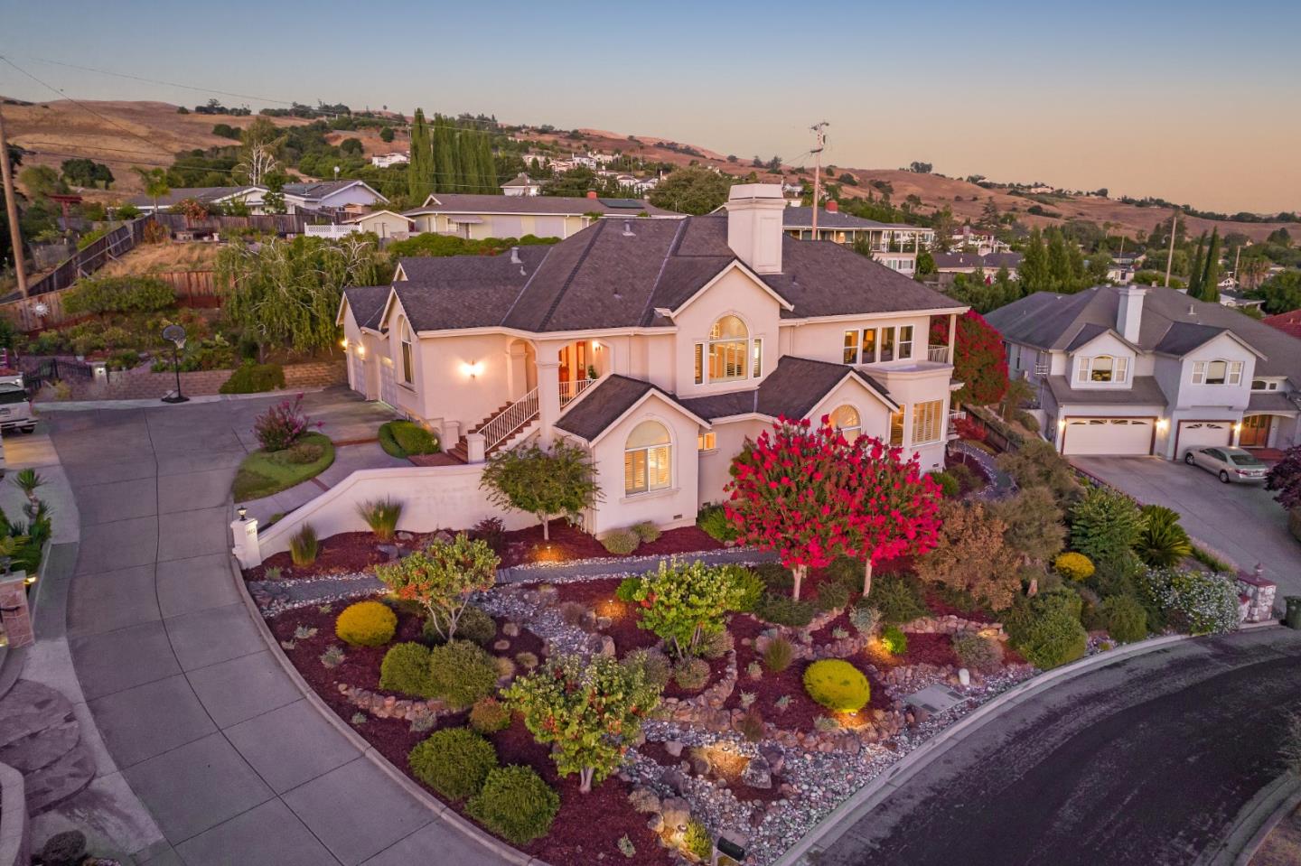 Welcome to 3502 Ambra Way! Nestled in the desirable Old Piedmont neighborhood near Berryessa, this beautifully maintained custom home offers an ideal blend of classic charm and modern elegance. Situated on a hillside within an exclusive gated community of only 17 custom homes, this home offers a warm, inviting & private ambiance, showcasing panoramic views spanning the entire Bay Area from Downtown San Jose to the Peninsula across to San Francisco. The Mediterranean-inspired facade features arched windows and multiple decks, embracing the essence of California living. Primary ensuite bedrooms with lg. walk-in closets on each level provides both privacy & convenience. An open floorplan seamlessly connects the family room, kitchen, breakfast bar & nook, offering access to an expansive deck & balcony for al fresco dining. A well-maintained front yard with lush landscaping is complemented by a curved driveway leading to the attached two-car garage. The back & side yards are equally impressive, offering multiple outdoor spaces perfect for relaxation & privacy or entertaining. Located minutes from Berryessa BART, SJC Airport, freeways, Alum Rock Park, Spring Valley & SJ Muni Golf Courses, you'll enjoy easy access to outdoor recreation & local conveniences. This is a one-of-a-kind gem!