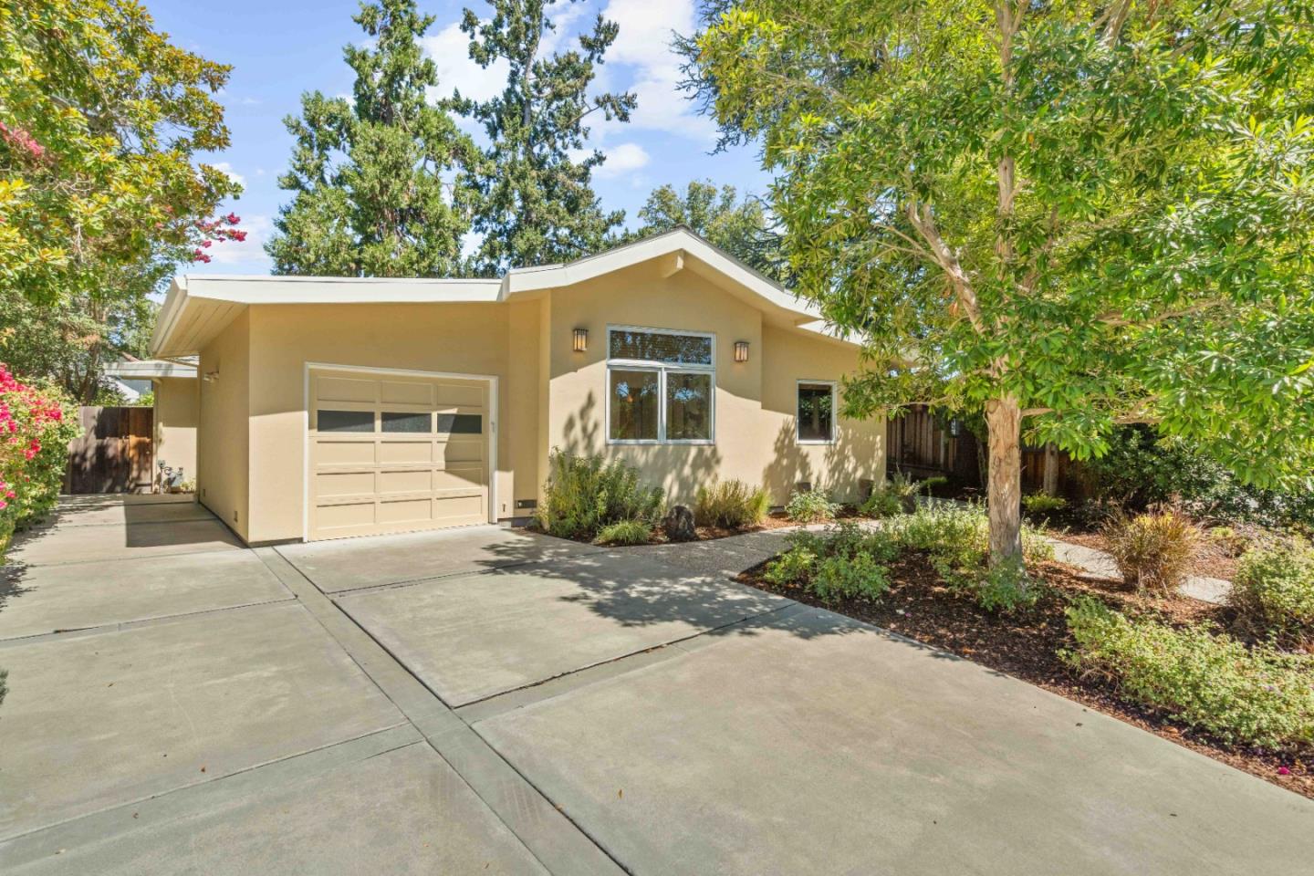 A large Palo Alto lot of more than 10,000 square feet plays host to this updated Palo Alto home. Nestled along a peaceful, tree-lined street, this residence welcomes you with beautiful hardwood floors, vaulted and paneled ceilings, and an abundance of natural light. The traditional floorplan includes large gathering spaces, the kitchen with a Bosch range, and five bedrooms including the inviting primary suite. Outside, a park-like backyard beckons with gorgeous trees and foliage, walking paths, and a sprawling lawn, while additional amenities include air conditioning and an attached garage. Find yourself within walking distance of Greer Park, minutes from the Midtown Shopping Center and the shops and restaurants along California Avenue, and convenient to both Caltrain and US-101. Plus, children may attend acclaimed schools Palo Verde Elementary, JLS Middle, and Palo Alto High (buyer to verify eligibility).