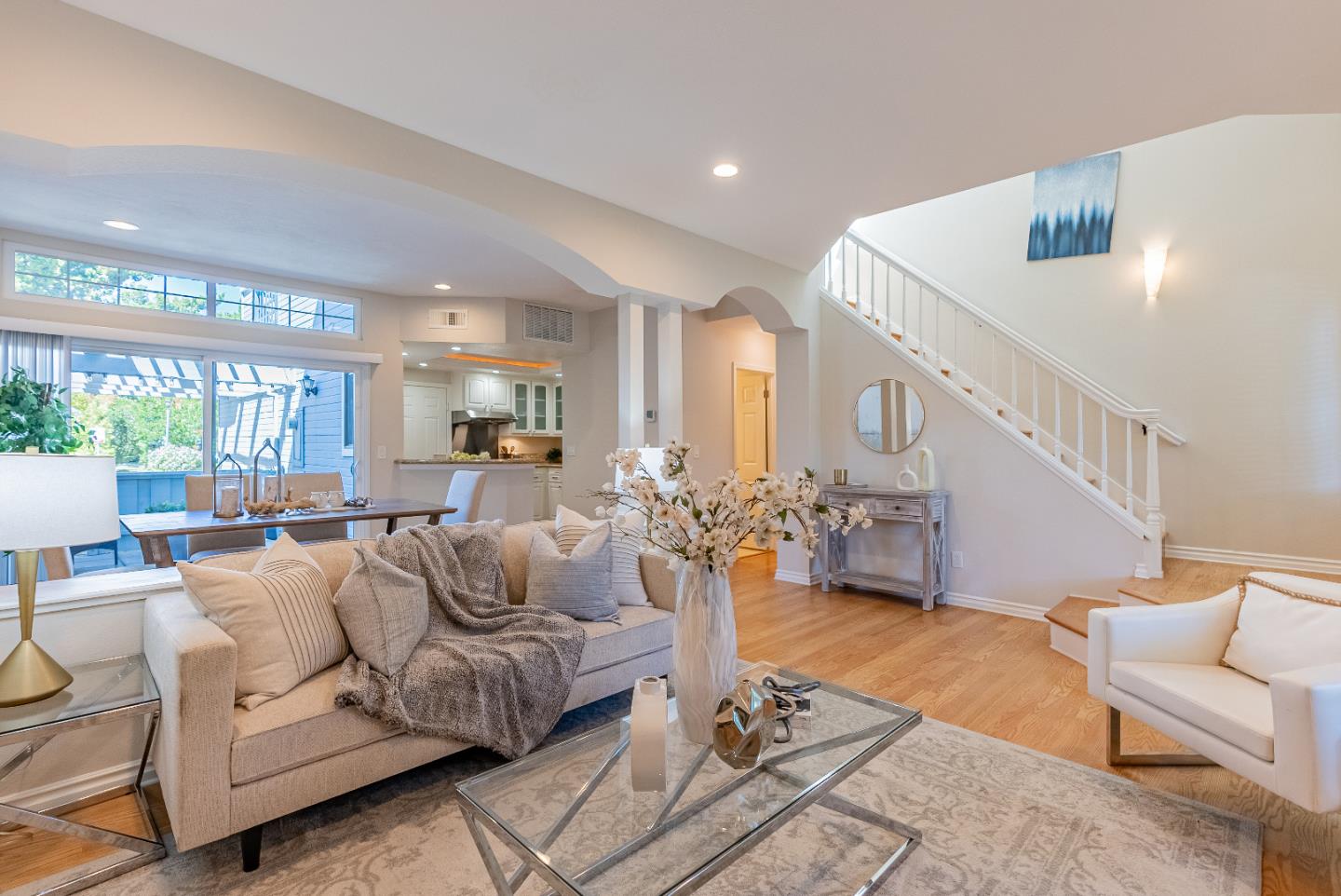 Luxurious high ceiling townhome, only half a mile from Downtown Mountain View where you can enjoy a variety of restaurants, deliciously fresh finds at the weekly Farmer's Market or go on a Caltrain adventure. Inside, you'll find a sun-filled open floor plan with newly installed red oak wood flooring (2020), high ceilings with arched opening, recessed lighting, tons of dual-pane windows with newly installed wood shutters, skylight, heat/AC and a cozy gas fireplace. The gourmet kitchen boasts top-of-the-line appliances, granite countertops, beautiful display cabinets with under cabinet lighting and an inviting dinning area. Two large bedroom suites, with the primary bedroom suite including a private balcony, walk-in closet and spa-like en-suite bathroom including dual sink and shower/tub combo with window above. Additional features include a one-car garage with washer/dryer, additional carport, large front and back patio, two balconies and a relaxing community pool/spa. This home is conveniently located near grocery stores, shopping centers, parks, and major tech giants like LinkedIn and Google. With easy access to Highway 85, 101, 237, Central Expressway, Light Rail and Caltrain. Do not miss your chance to own this Mountain View marvel. It will go FAST!