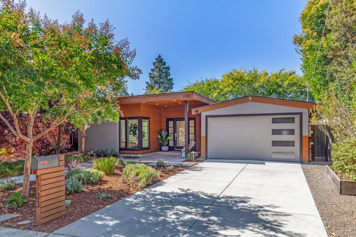 This high-end, single-level home was completely remodeled in 2016 and is entirely turn-key, sleek, stylish, and boasts modern architectural lines. The living room sits beneath vaulted ceilings with two large skylights, and opens directly to the dining room and chefs kitchen with dual access to the yard. Ideal for guests, a bedroom suite sits at the front of the home with a large walk-in closet and chic en suite, and two additional bedrooms have generous closet space and picture windows. The primary suite, or comfortable family room, sits at the back of the home for ample privacy and features access to the yard and a gorgeous, marble-appointed en suite. A detached ADU is perfect for a home office, exercise room, or studio with carpeted floors and windows on three walls. The backyard is poised for entertaining with an extensive wood deck, area of level lawn, and raised garden bed with perfectly manicured plantings and a grove of mature shade trees. A luxurious lifestyle awaits, steps to Theuerkauf and Stevenson Elementary, and just minutes from Google, commute routes, and downtown amenities!
