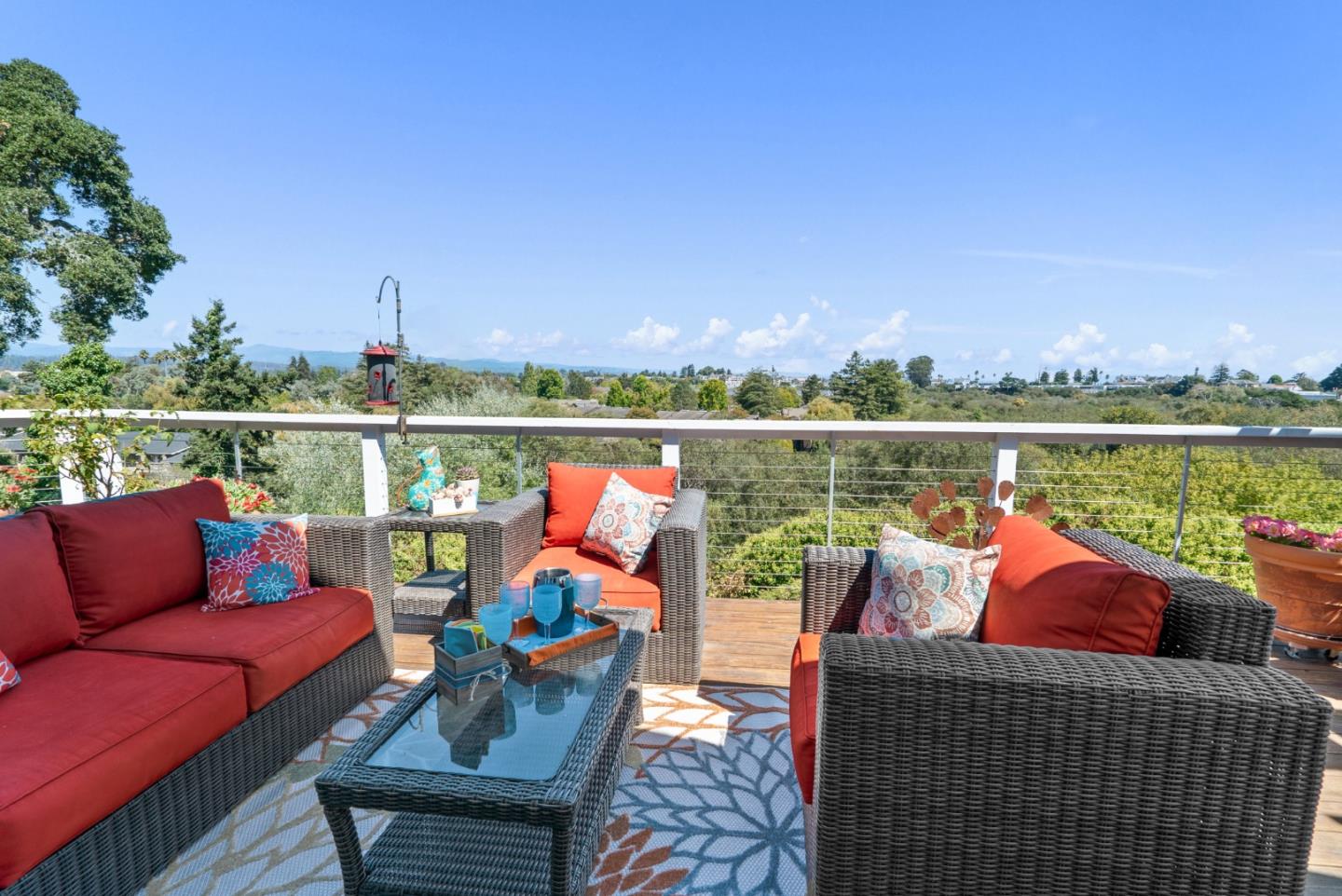 Nestled at the end of a quiet private driveway, this stunning freestanding home boasts panoramic views of the iconic Santa Cruz,including Neary Lagoon, Dream Inn, and the Santa Cruz Boardwalk. Just a short stroll to the famous Cowells Beach and West Cliff Drive, and an easy walk to downtowns vibrant dining and shopping scene, this home offers the perfect blend of coastal tranquility and city convenience. Step inside to a beautifully updated kitchen featuring expansive granite countertops. The kitchen flows seamlessly into the dining and living rooms, all of which open to a spacious deck where you can soak in the citys breathtaking views. The living room showcases a fireplace, creating a cozy space to unwind.The main-level bedroom is generously sized with an adjacent bathroom. Upstairs, the primary suite offers spectacular views of the lagoon,Monterey hills and sparkling city lights at night. Imagine waking up to these stunning vistas from your bedroom or enjoying the peaceful scenery from your living room deck.The outdoor space includes a large area below the deck, perfect for gardening,whether its veggies, flowers, or a space for your furry friends. Come explore this beautiful home and experience the serenity it offers in this peaceful, sought after setting.