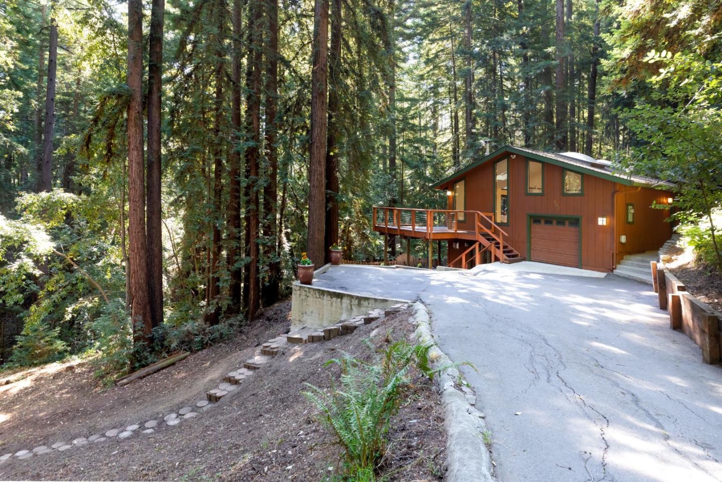 Wooded, Wonderland on Waldeberg Road! Private, peaceful and romantic creek side setting on 1+ acre parcel. Beautiful custom designed mission style home. Open floor plan with soaring ceilings, skylights and hardwood floors. Extensive decking expands the living space. AND the sparkling Jacuzzi lap pool is the ultimate place to relax. There is plenty of room to garden and hike the trails down to Marshall creek. You will love living here.