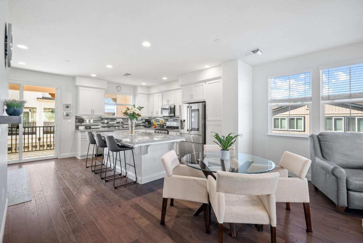 Welcome to this beautiful, light-filled corner unit townhome, boasting 3 spacious bedrooms, 2.5 baths, and an additional bonus space perfect for a secondary living area or a potential fourth bedroom. The expansive, open floor plan seamlessly blends the living, dining, and kitchen areas, creating the perfect flow for both everyday living and entertaining. The kitchen is a chefs dream, featuring sleek countertops, high-end appliances, and ample storage space. The generous island provides additional prep space and is perfect for casual meals or gathering with friends and family. Upstairs, you'll find the serene primary suite with a large walk-in closet and an ensuite bath, complete with dual vanities. The two additional bedrooms are spacious and filled with natural light, offering plenty of space for family or guests. This corner units thoughtful design includes large windows throughout, providing an abundance of natural light and lovely views. The bonus space offers flexibility to fit your lifestyle, whether you need a home office, playroom, or an extra bedroom. Located in a desirable community, with easy access to local amenities, parks, and top-rated schools, this home offers both comfort and convenience. Don't miss the opportunity to make this beautiful townhome your own!