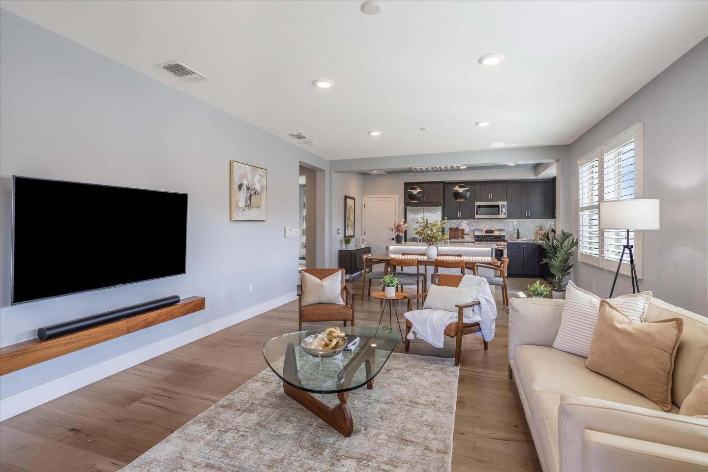 Welcome to this stunning one-story flat, offering secured direct access from the elevator to your unit. This modern home features 2 spacious bedrooms plus a versatile office/den/gym, perfect for today's lifestyle. The gourmet kitchen is a chef's dream, featuring quartz countertops, a matching backsplash, sleek cabinets, and Bosch appliances. Tall baseboards flow throughout, and thoughtful touches like light sensors in bedrooms and bathrooms enhance convenience. Enjoy the luxury of a tankless water heater, reverse osmosis water filtration, water softener system with Moen Flo Smart Water Monitor, high ceilings, and upgraded engineered wood flooring, with tile in the bathrooms.The property also includes a 2-car attached garage with extra storage, a covered outdoor living space ideal for al fresco dining. Built in 2016, this corner unit is part of a community with a walking trail, clubhouse, and bocce ball court, set across from a scenic golf course.You'll love the walkable lifestyle, with easy access to amenities like Sprouts, H-Mart, City Sports, Peet's, Starbucks, Ramen restaurant, Ulta Beauty, BofA and Chase. Plus, it's conveniently close to high-tech companies, Challenger Private School, Bellarmine CollegePrep, Berryessa BART, and offers easy freeway access to 101, 680, and 880.