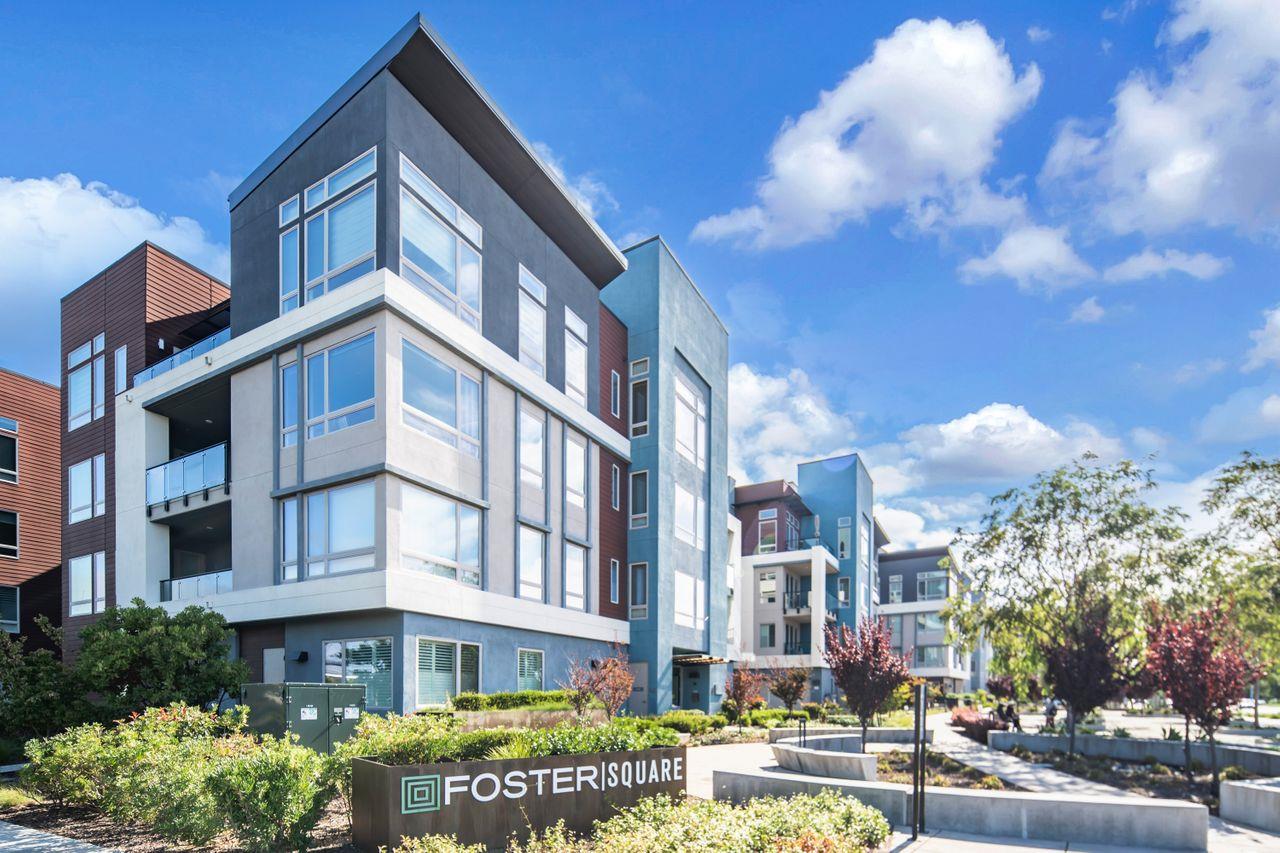 BEST OF FOSTER SQUARE! Rarely available, top floor, end-unit w/panoramic views. Don't miss your shot at one of the most sought-after units in this prestigious, luxury, modern, 55+ senior HOA community built in 2018 by Lennar Homes. INCREDIBLE LOCATION is close to the library, PJCC, restaurants, markets, and shopping. Across the street from Leo Ryan Park, enjoy the outdoor amenities w/its recreation center, pickleball, bocce ball, amphitheater, lagoon activities, concerts, and paved pathways for an active lifestyle. WONDERFUL 3bd/2ba unit of 1721 sq. ft. has high-soaring ceilings & large picture windows throughout, enhancing the great room kitchen/dining/living open floor plan, perfect for family and guests. Open chefs' kitchen has a large center island, SS appliances, ample wood cabinetry, walk-in pantry, beautiful tilework & countertops. The living area opens to the patio overlooking the park/lagoon. Upgrades galore, incl. engineered hardwood floors, LED recessed lighting, Hunter Douglas window coverings, walk-in closets, NEST-controlled central heat/AC & in-unit washer/dryer. Secure wheelchair accessible building has exclusive elevator access direct to the unit's private foyer. The spacious, private 2-car side-by-side garage is across from the elevator. MUST SEE!