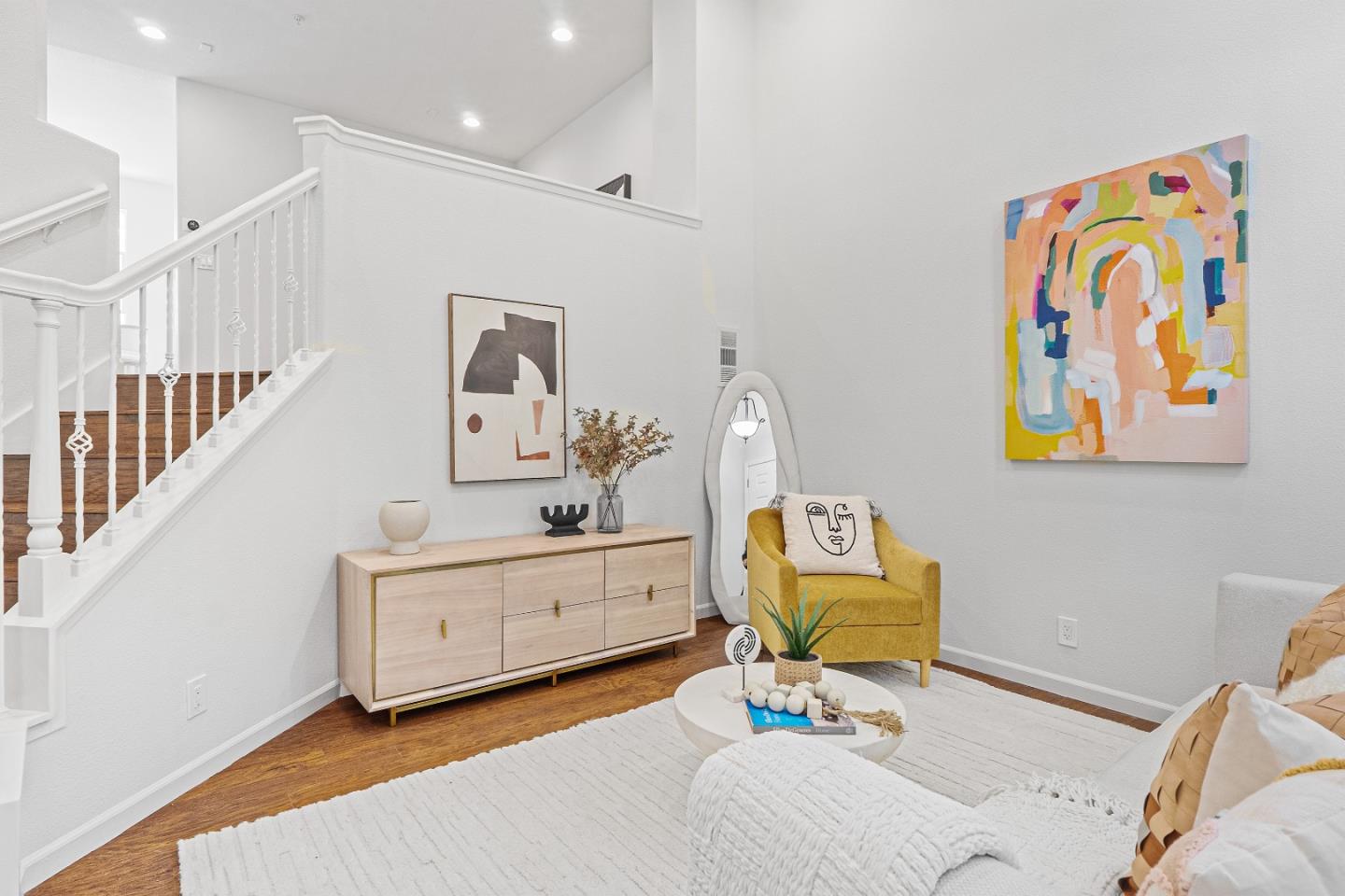 Discover your new haven at Mission Gardens! This stunning townhome offers 3 bedrooms, 2.5 bathrooms, and soaring 20-foot ceilings in the living room. Enjoy abundant natural light through tall windows and stylish upgrades like beautiful laminate floors and fresh paint throughout. The gourmet kitchen features white cabinetry and granite countertops, while the spacious master bedroom includes two closets. The side-by-side 2-car garage has a large storage area. Take advantage of the nearby community pool and children's play area, and enjoy the convenience of the Rivermark retail center and library. Access the award-winning K-8 Don Callejon School and enjoy close proximity to tech giants like Oracle, Intel, Cisco, Nvidia, and Levi's Stadium. All this with a low HOA fee! Don't miss this opportunity!