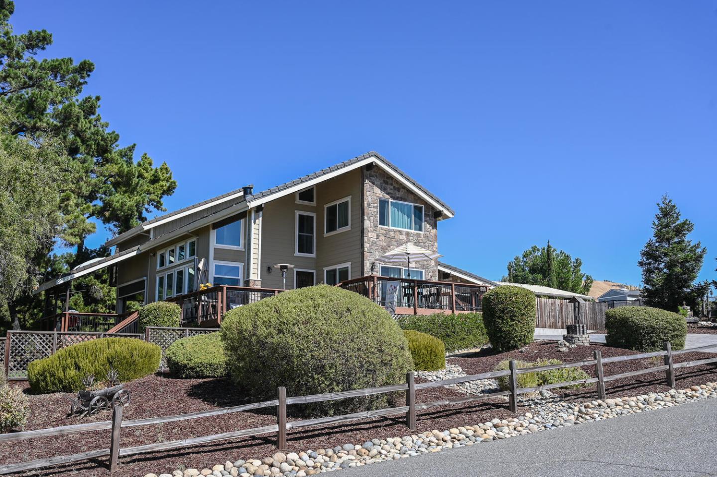 Gorgeous Holiday Heights property! Beautifully updated 3-bedroom, 3 full bathroom home with separate media/game room (can be 4th bedroom.) Soaring vaulted ceilings in spacious living room with wood floors and wonderful stone-fascia fireplace. Tall double wooden sliders open onto the California Room patio complete with electric windscreens, heaters, ceiling fan, and TV. Lovely kitchen with stainless steel appliances, gas range, large pantry, ceiling fan, and sunny nook. Upstairs media room with private deck and additional entrance from circular staircase. Open and bright primary bedroom with beautifully remodeled bathroom. Usable .3-acre lot with expansive decking on three sides offering multiple patio/entertaining areas. Bocci Ball court, patio area, Large storage shed, as well as fenced covered shop yard offering plenty of additional storage & parking for Boat/RV/Trailer. Fantastic, stamped concrete circular driveway enhances the incredible curb appeal. Great setting on quiet street with stunning valley views. This home is special!