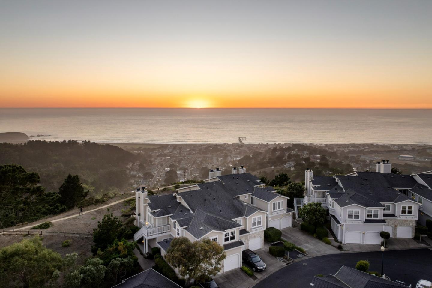 Welcome to 61 Outlook Circle, an impeccably renovated end-unit condominium that offers complete privacy and breathtaking panoramic views of the Pacific Ocean, Mt.Tamalpais, Pedro Point, and the Farallon Islands. Situated along protected land, this home is bathed in natural light and provides direct access to an extensive trail system. The living area features a sunken layout with a wood-burning fireplace, seamlessly opening to an oversized private patio where you can take in the ocean breeze. The recent renovations showcase a stunning chefs kitchen with elegant stone countertops, stainless steel appliances, and a stylish backsplash. The primary suite boasts a custom walk-in closet and a luxurious bathroom, including a newly-renovated double shower. An oversized second bedroom is perfect for a king-sized guest room or home office. Throughout the home, you'll find hardwood flooring, recessed lighting, and smart door locks. Nestled in a gated community, residents can enjoy exclusive amenities like a clubhouse, kids play area, and open green space. Conveniently located only 15 minutes to San Francisco and 12 minutes to SFO, this home offers both a peaceful retreat and easy access to all the city has to offer. Dont miss the chance to call this serene, coastal oasis your own!
