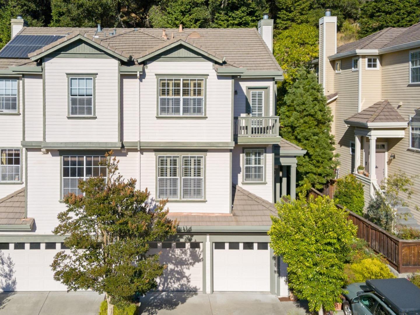 Nestled in the forested hills of Scotts Valley is 113 Woodhill Drive. This spectacular duet-style home comes loaded with a host of premium features and upgrades. Located on a friendly cul-de-sac, this home offers an ideal balance of privacy and community, just a quick stroll to MacDorsa park. Inside, you'll find high ceilings with crown molding, plantation shutters, built-in cabinetry and central A/C. The open-concept kitchen is perfectly connected to the living and dining areas, creating a seamless flow ideal for entertaining and daily living. Kitchen features include granite countertops, stainless-steel appliances, abundant cabinet space and breakfast bar. Additional amenities include gas fireplace, oversized windows and direct access to a serene back patio complete with a built-in BBQ and unique 'living' wall that keeps the space cool and shaded in the Summer. Upstairs hosts three large bedrooms including a luxurious primary suite with double-door access to a private balcony overlooking the tranquil surroundings. The en-suite bath features an oversized tile shower, tiled floors and a huge walk-in closet. Walking distance to award-winning Scotts Valley schools, hiking trails, restaurants, and shopping, plus convenient access to Google and Apple shuttles...this is the one!
