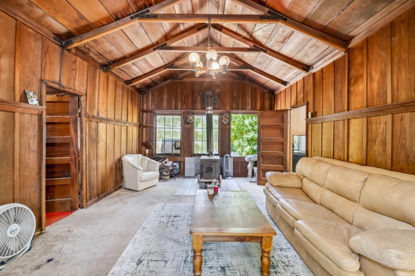 Amidst the tranquil embrace of majestic redwoods, this cabin stands as a beacon of serenity. The moment you step inside, you are enveloped by the rich warmth of original wood detailing that permeates the home, harmoniously blending with the lush greenery surrounding it. The living room, crowned with cathedral ceilings, becomes a sanctuary of relaxation centered around a cozy stove that invites heartfelt conversations and quiet reflections. Each bedroom is thoughtfully designed with built-in closets. The local charm of Downtown Felton will captivate you whether you're catching a live show at the Felton Music Hall or indulging in a pastry from The Grove Cafe and Bakery. For nature enthusiasts, the proximity to Henry Cowell Redwood State Park offers an unparalleled opportunity to immerse oneself in scenic vistas. Moreover, a picturesque drive along the historic Hwy 9 leads you to Santa Cruz, where many shopping, dining, and beach adventures beckon.
