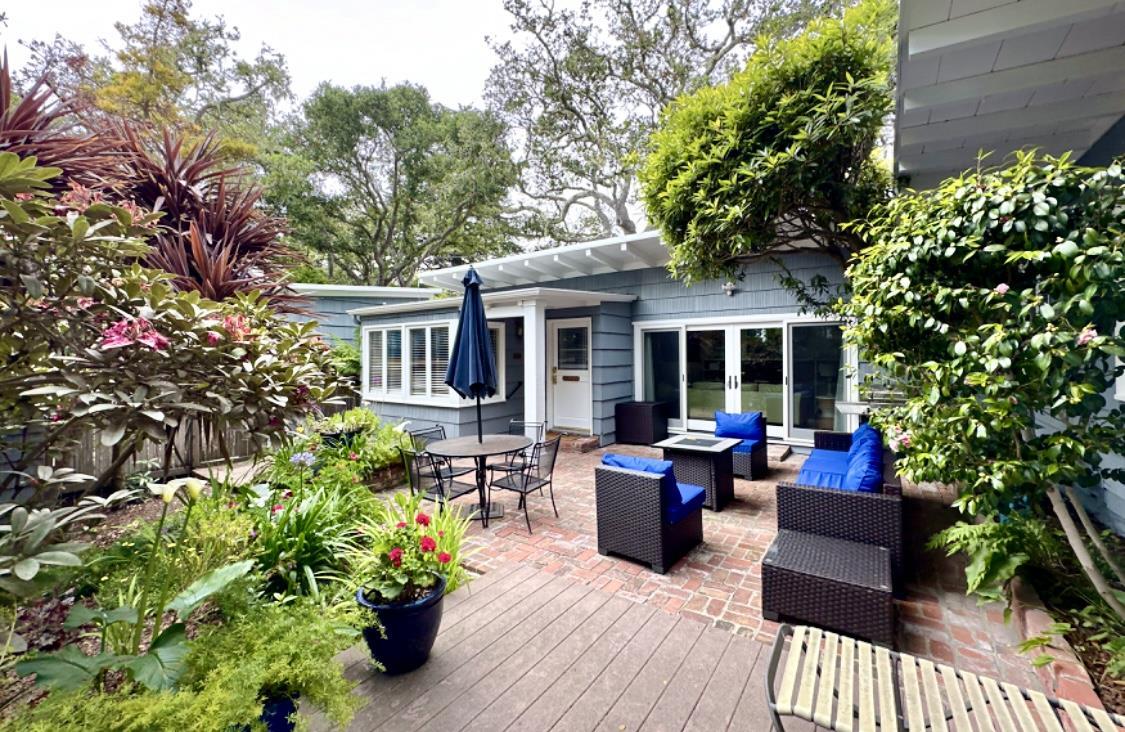 RARE CARMEL COTTAGE & ADU! Main house is 3 bed 2 ba (1550sf) with landscaped courtyard and filtered view of the ocean. Also there is a separate loft apartment (489sf) with its own kitchen and bath and private fenced patio. Carmel style open beamed ceilings throughout with large skylights and sliding patio doors bring the outside in for a feeling of openness and space. Total living area of home and ADU is 2039sf. Located on a 6000sf lot there is a single car garage along with off street parking for an additional 6 cars!