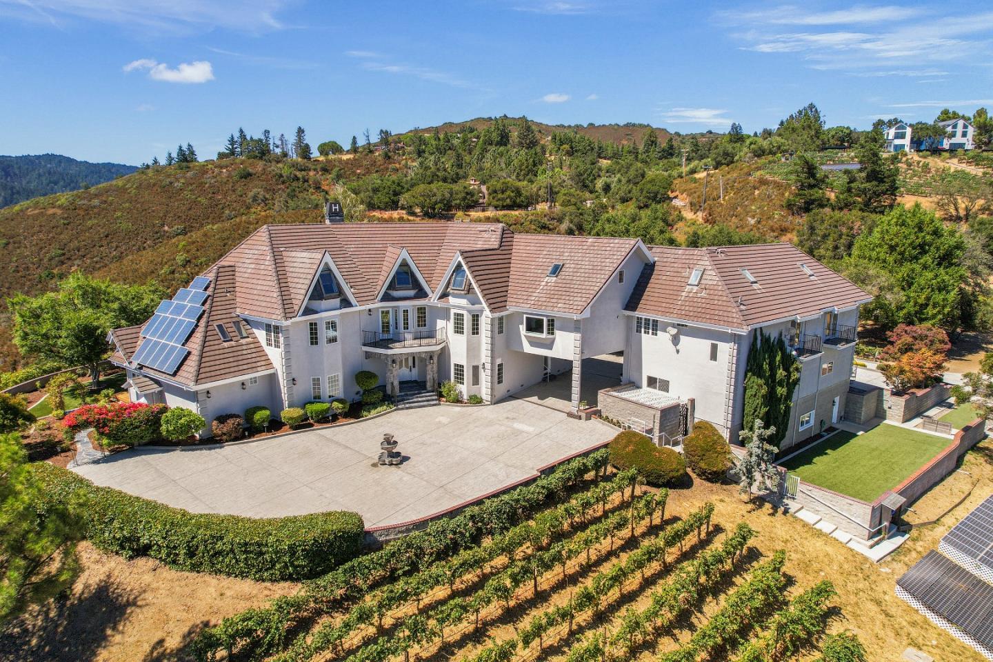 Sales Price reflect No buyer or buyer agent concession. Situated in the coveted Montevina neighborhood of the Los Gatos mountains is Halls Manor. This stately, gated, equestrian and vintner estate offers a unique blend of elegance w/numerous onsite amenities, presenting an unparalleled lifestyle opportunity just 6 miles from town. Set on an expansive 7.2± acre lot, the property boasts dramatic views of Lexington Reservoir, surrounding mountains and canyons, and valley floor. The vineyard, which yields approx 5-6 tons of Pinot Noir varietal, adds a touch of vintner charm to the estate. Enjoy the putting/chipping practice green, golf tee box, and horse shoe pit. Estate is designed w/ fully functioning equestrian facility, including a 4-stall barn, tack room, service kitchen, 1 & ½ baths, expansive game room/bunk house. The equestrian area is further enhanced with hot walker, palpation chutes, and paddock. Spanning 7,591± sf, the residence features 4 bedrooms, 4 full baths, 2- ½ baths, 5 fireplaces, dramatic vaulted ceilings, theater, expansive office and extensive finished attic and basement spaces. Photovoltaic solar for the main house and barn, 4 zones for heat and a/c, whole-house generator, and 2 large propane tanks.