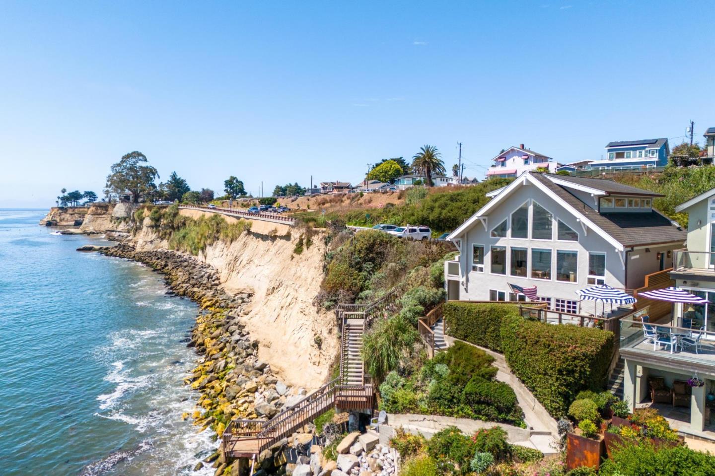 Welcome to Capitola By the Sea.This exquisite custom built, iconic,oceanfront home w/unobstructed views of Monterey Bay, Capitola Vlg. & Capitola Pier will leave you breathless!Dramatic panoramic ocean views from every room, all decks & patio.Rebuilt in 1995.Well maintained property offers open concept floor plan,engineered Oak Hardwood floors, open beam ceilings & oversized windows to capture amazing ocean views! Kitchen features oversized 13 ft. island w/granite countertops, stainless steel appliances,gas range,farmhouse sink,custom cabinets for generous storage,wine refrigerator-great for entertaining! Large loft w/ spectacular views of pier and bay! Picturesque ocean views from the primary ensuite & guest room located on ground level.Beach access. Located up the hill from the illustrious Capitola Village. One-car attached garage and large d/w to accommodate add'l cars.Additional amenities include finished basement, outdoor hot/cold shower & extra space under the house for storing surf boards, kayaks coolers & beach toys.The ocean bank is landscaped w/established drought tolerant plants. Primary Residence,Second Home or Vacation Rental or both! Immediate STR no waiting. We promise you will enjoy this magical and legendary property! Furnishings/negotiated.