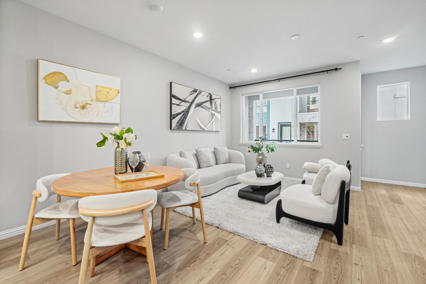 Serene Living in the Heart of a Modern Community! Step into tranquility with this contemporary, 4-year-old gem, perfectly positioned away from the hustle and bustle of streets and cars in a sustainable, all-electric community. The home's interior is a haven of natural light, showcasing a thoughtful layout. The essence of modern living is captured in the main living area, where an upgraded kitchen awaits with quartz countertops, a center island, and energy-efficient appliances, all complemented by a balcony designed for serene moments. The private quarters upstairs offer unmatched tranquility, with dual suites providing luxury and comfort. The master suite is a retreat of its own, featuring dual walk-in closets and a sophisticated bathroom. Across the hall, a guest suite with a private bath ensures comfort for all. This home promises a quiet lifestyle with access to communal parks, playgrounds, and a dog park, enhancing your living experience. The convenience of being within walking distance to essential amenities and easy access to transit and highways, combined with a low HOA of $285/month, solidifies this property as an ideal haven.