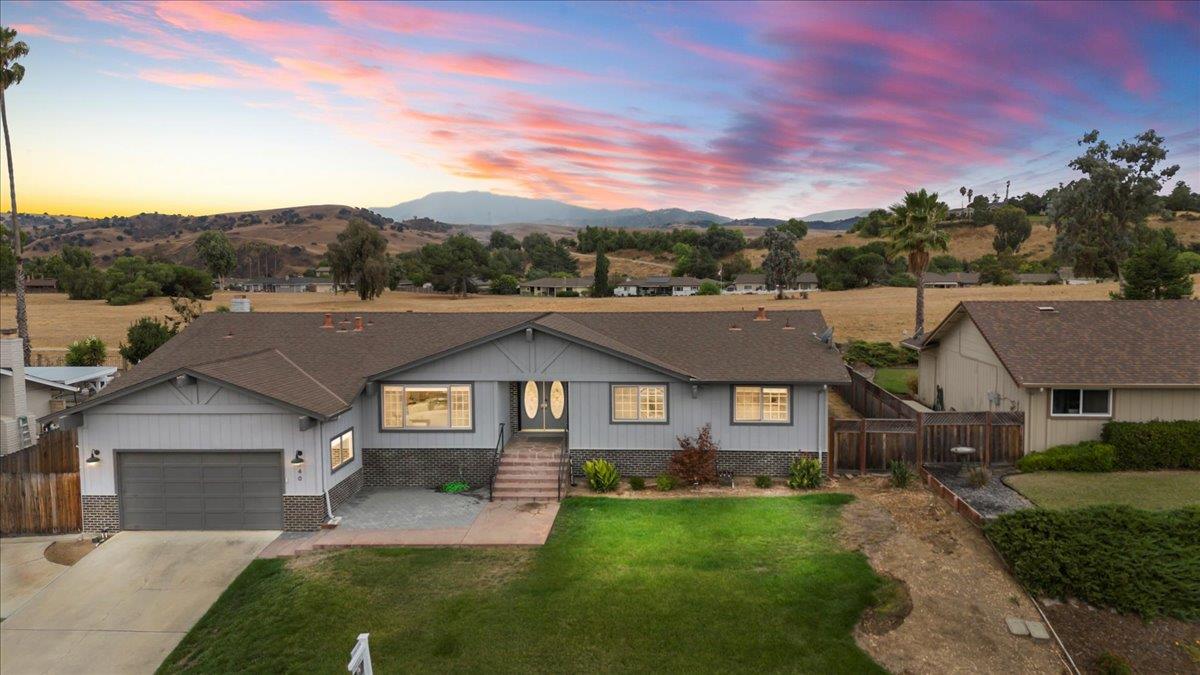 Welcome to 540 Donald Drive, an exceptional residence located in the prestigious Ridgemark gated community and golf course. This beautifully updated single-level home offers a perfect blend of comfort, elegance, and modern convenience. The open-concept family room and kitchen combo features a large kitchen island and stunning quartz countertops, new high-end gas range, and farmhouse sink ideal for entertaining. Enjoy picturesque views of the Gabilan Hills right from your front window. You'll also find a separate living room/den with a cozy atmosphere for more intimate gatherings with built in shelving and wood burning fireplace. With four spacious bedrooms, continuous flooring throughout, and tastefully upgraded details, this home ensures both luxury and functionality. Enjoy the convenience of a whole house-owned solar system, a water purification system, newer ac, and an EV charging station in the attached two-car garage. Outdoor living is a breeze with a private backyard featuring serene sitting areas, a relaxing hot tub, and side gate parking for additional storage. Whether you're hosting at the beautifully updated wet bar or unwinding in your tranquil outdoor space is the perfect balance of indoor and outdoor living. Make 540 Donald Drive your new sanctuary.