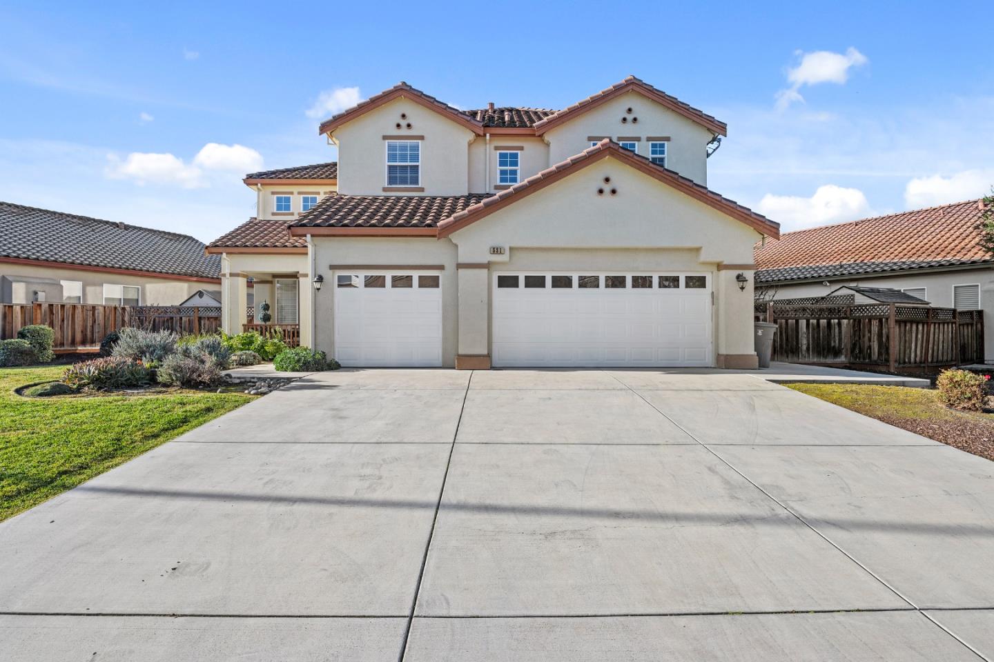 Welcome to this stunning 5 bedroom, 3 bathroom home with a spacious 3 car garage in the heart of Hollister, steps from shopping, dining and every day conveniences. Built in 2014, this 2578 sq ft home is air conditioned for year round comfort, and packed with upgrades and modern amenities, including owned solar for added energy efficiency. Step inside to beautiful engineered hardwood floors, custom stair railings and accents, stylish chandeliers and light fixtures, and a cozy gas fireplace. The gourmet kitchen boasts granite countertops, a large island, stainless steel appliances, and a reverse osmosis water system. A downstairs bedroom with a walk-in closet plus a full bath downstairs is perfect for guests or multigenerational living. Youll find the laundry room upstairs for added convenience, along with four bedrooms and well-appointed bathrooms. The primary en-suite bath is very spacious with a large tub for ultimate relaxation, plus a large walk-in closet. Outside, the beautiful backyard features stamped concrete and a large pergola with privacy screens, creating the perfect space for relaxing or entertaining. The large side yard provides the potential for trailer parking.